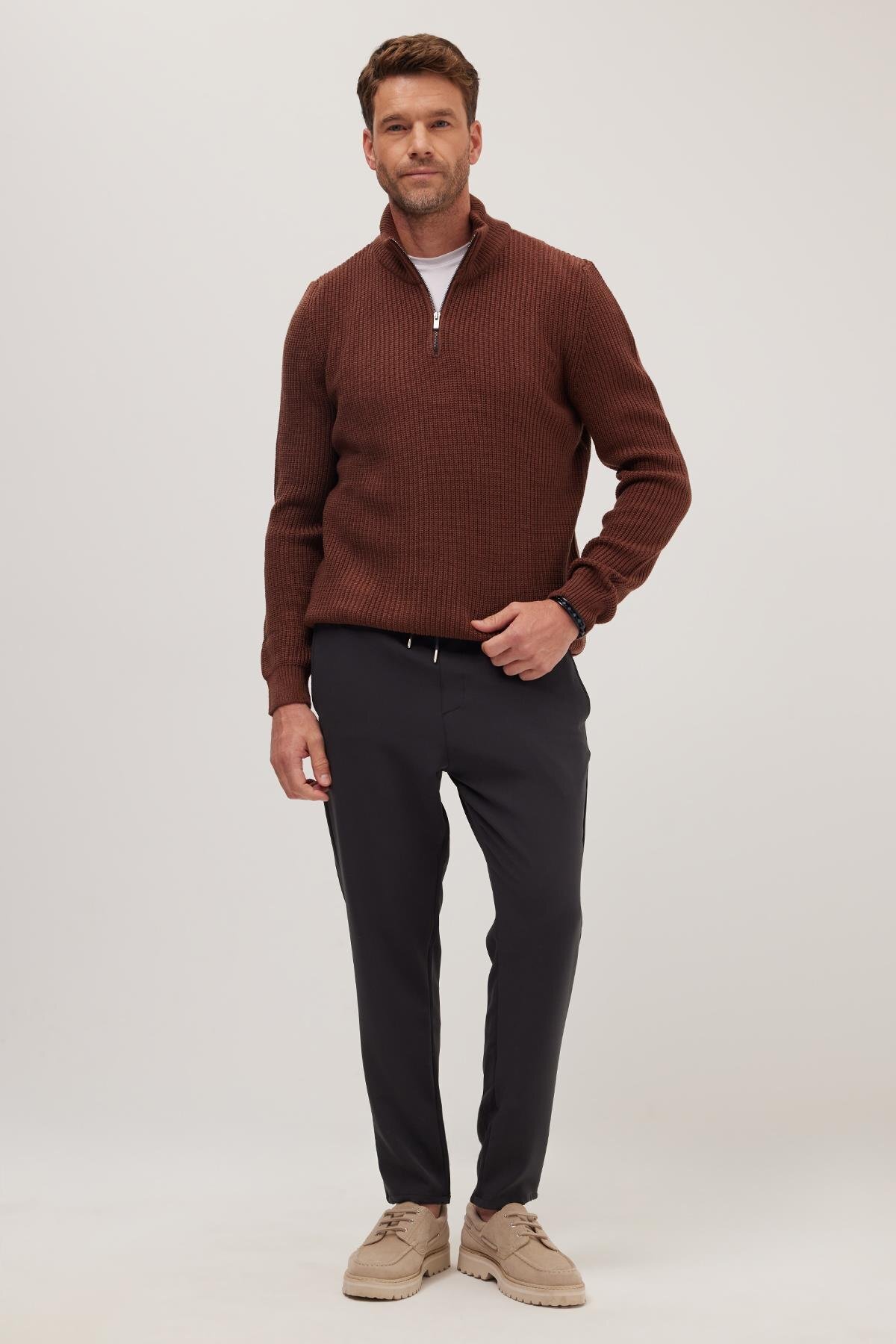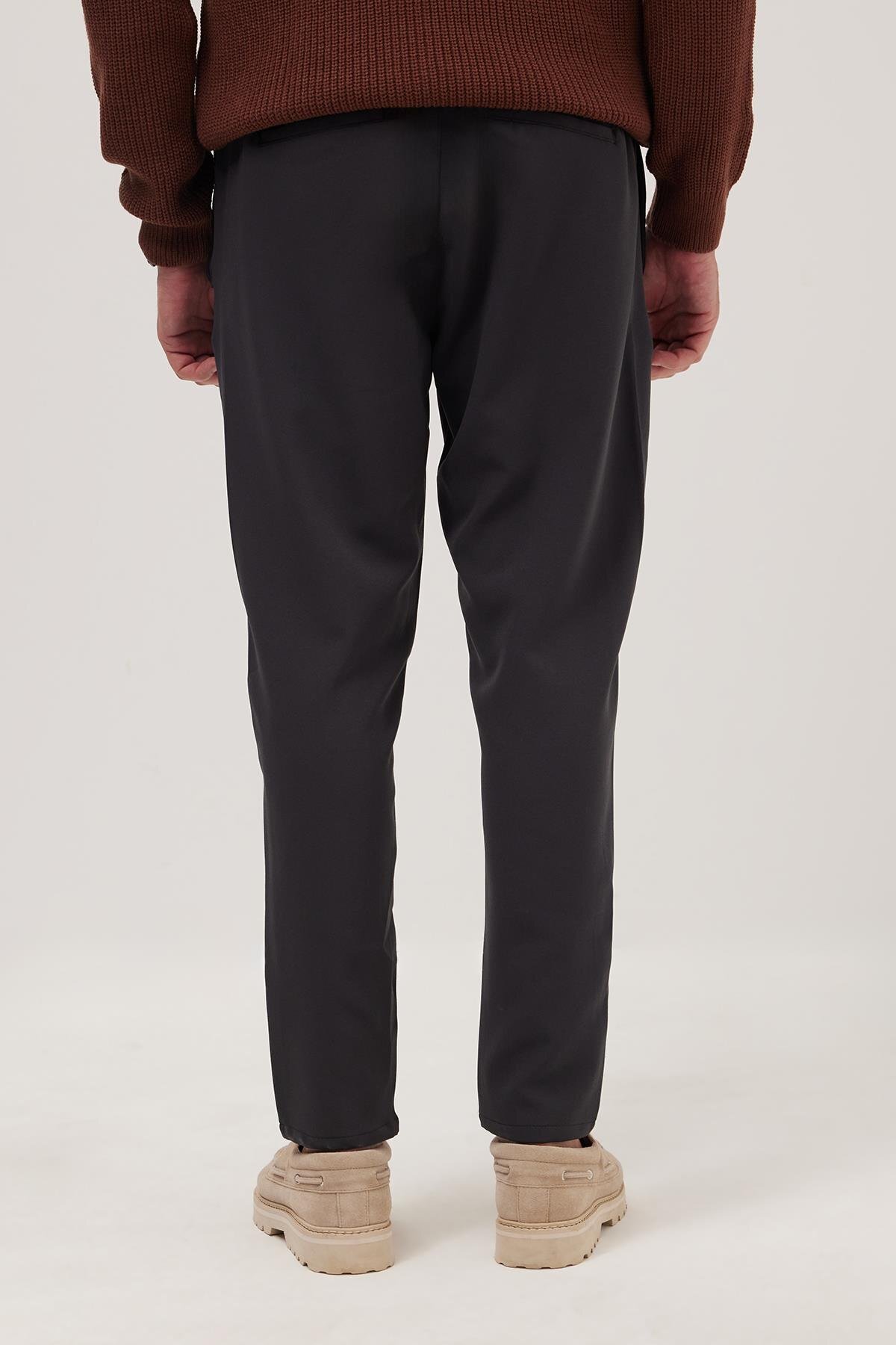 Erkek Regular Fit Beli Lastikli Bağcıklı Jogger Gri Pantolon Rahat Kesim Yan Cepli
