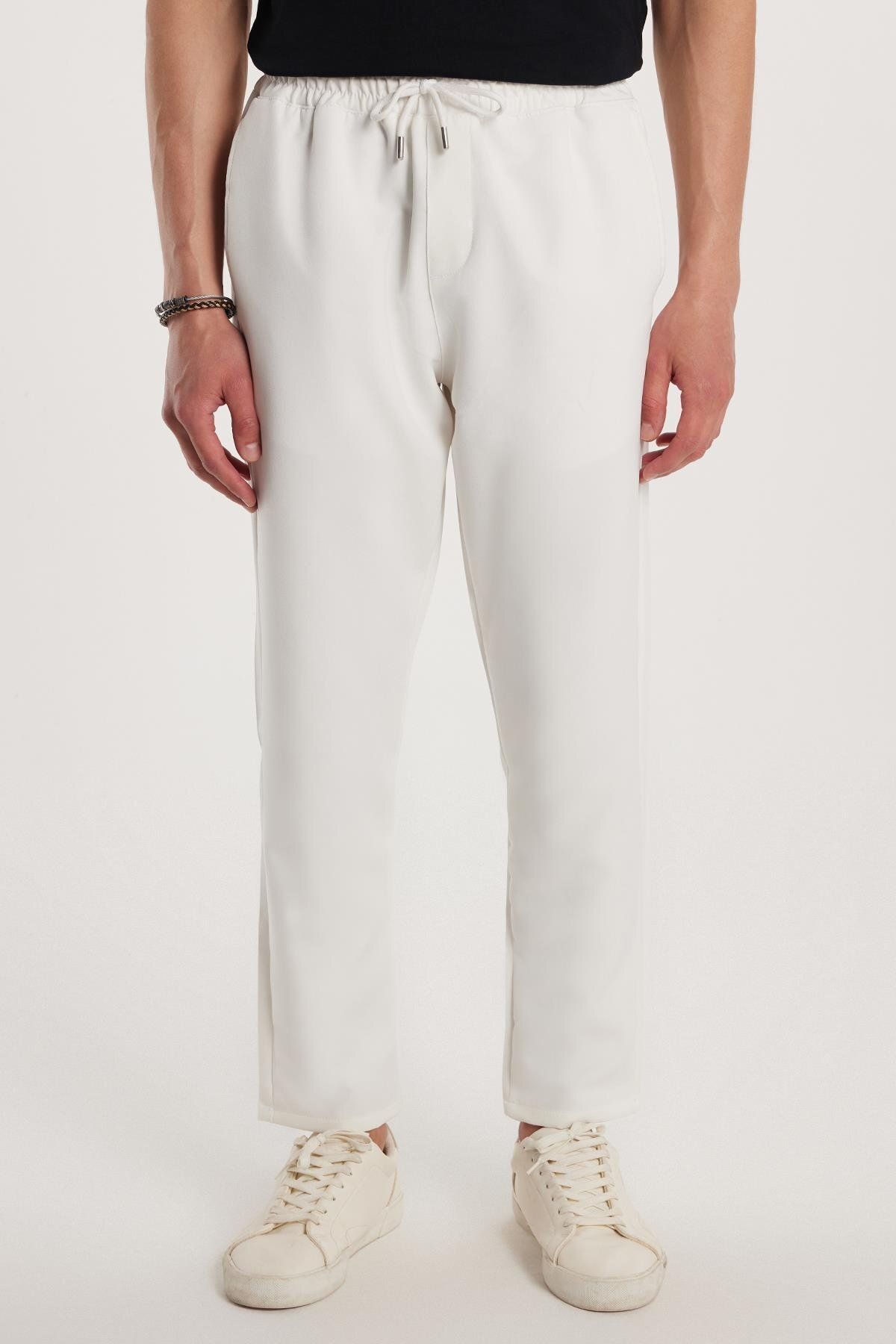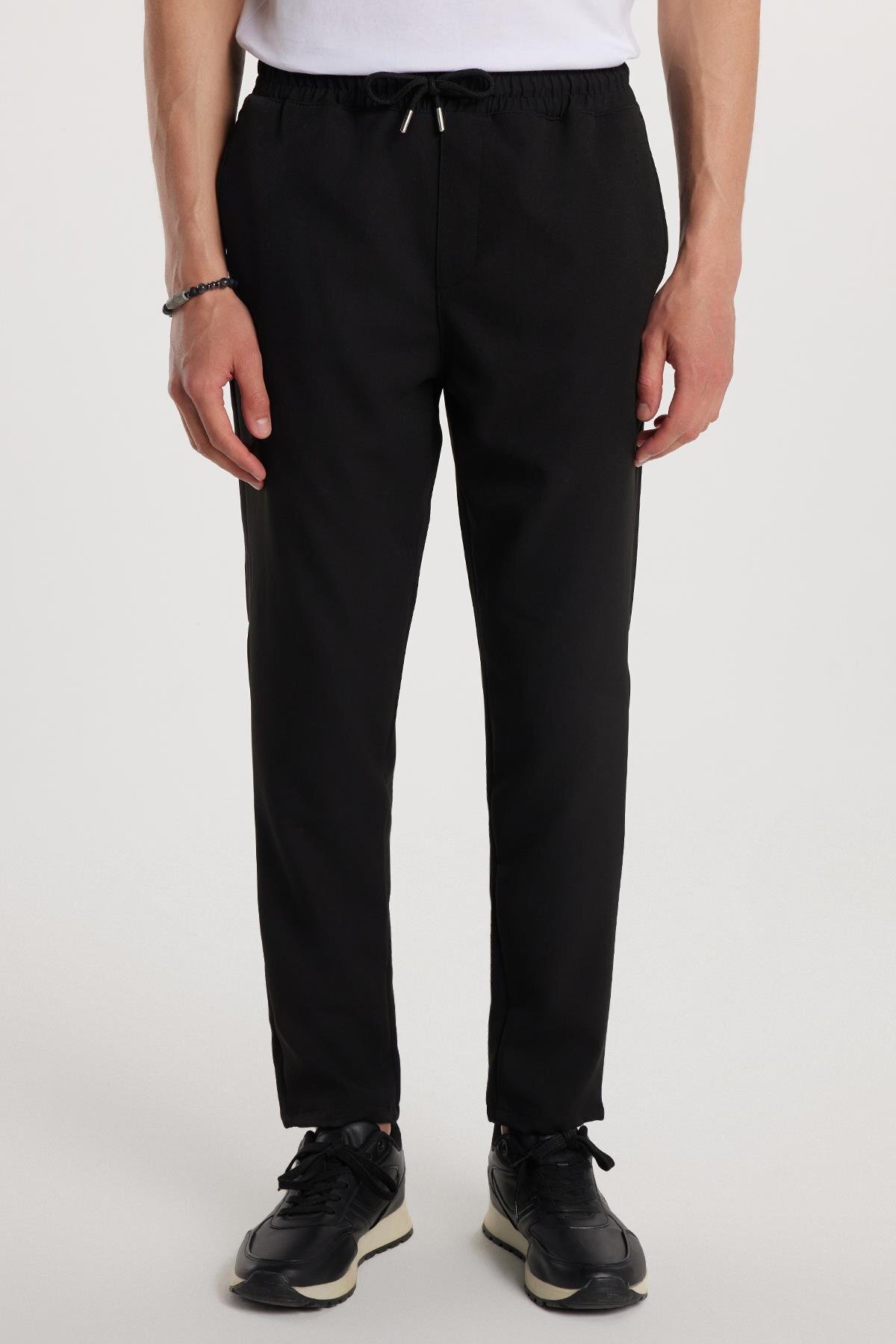 Erkek Regular Fit Beli Lastikli Bağcıklı Jogger Haki Pantolon Rahat Kesim Yan Cepli