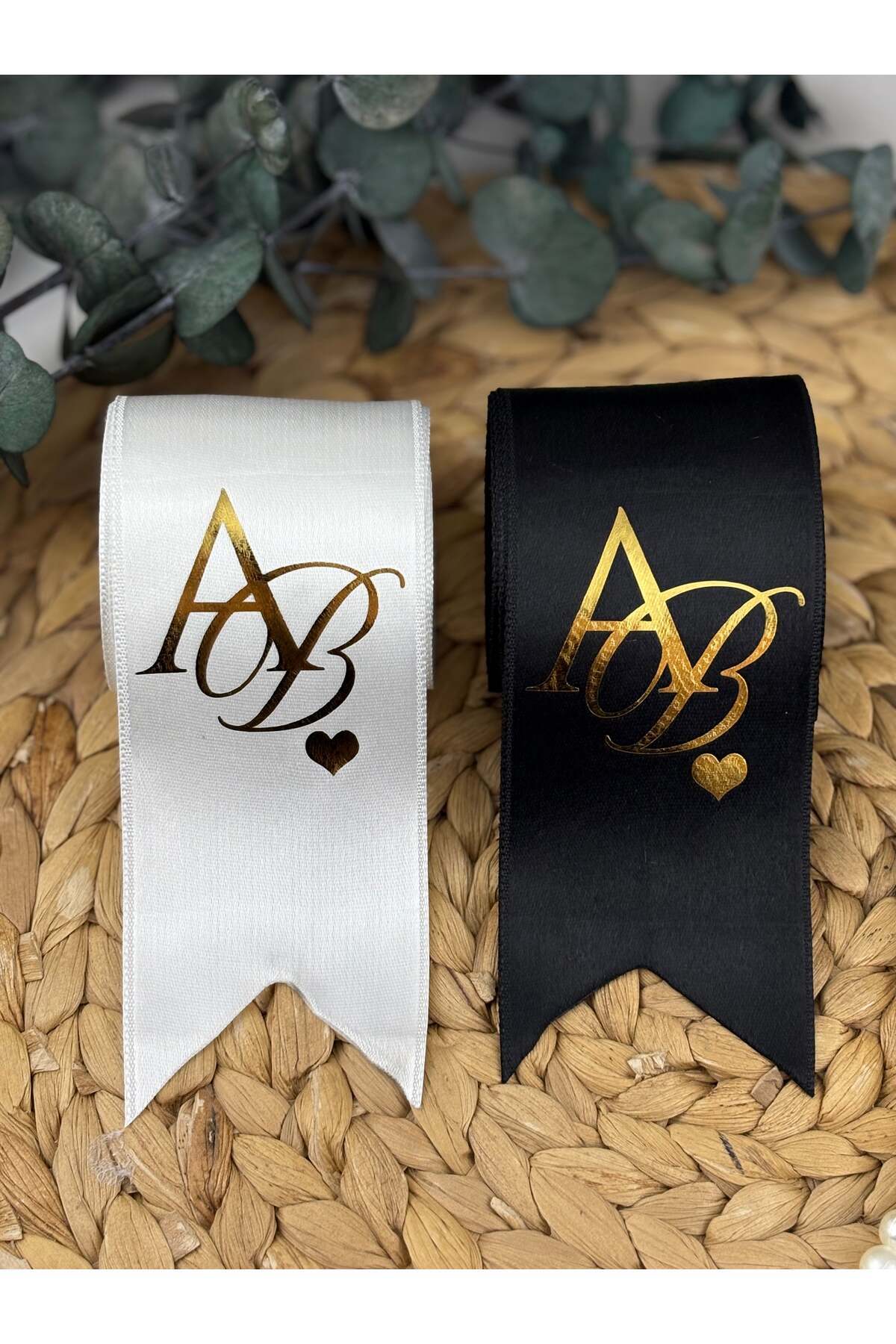 Takı Kurdelesi - 6 cm En, 2 Metre Uzunlukta, Siyah ve Beyaz Renk, 2 Adet Kişiye Özel