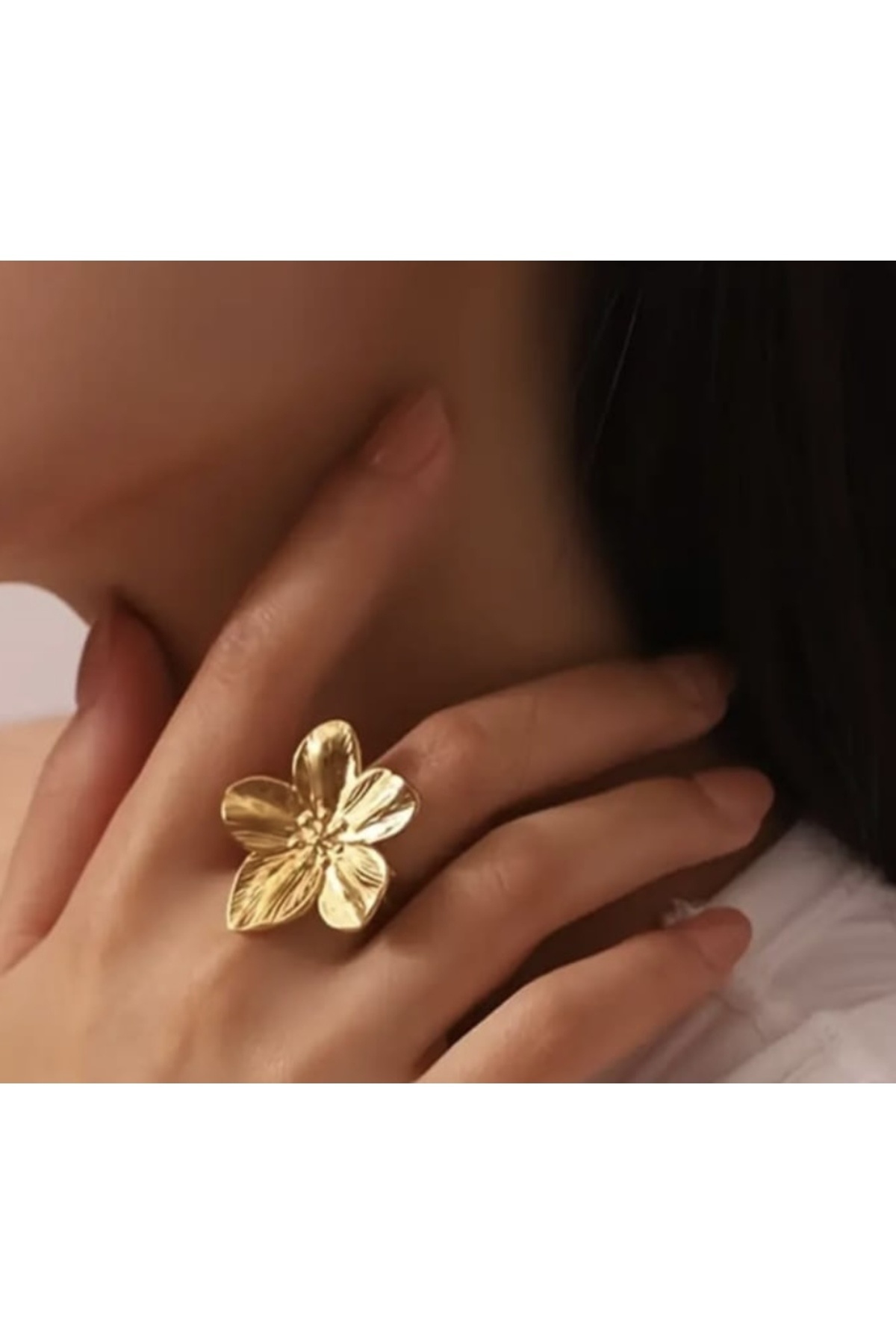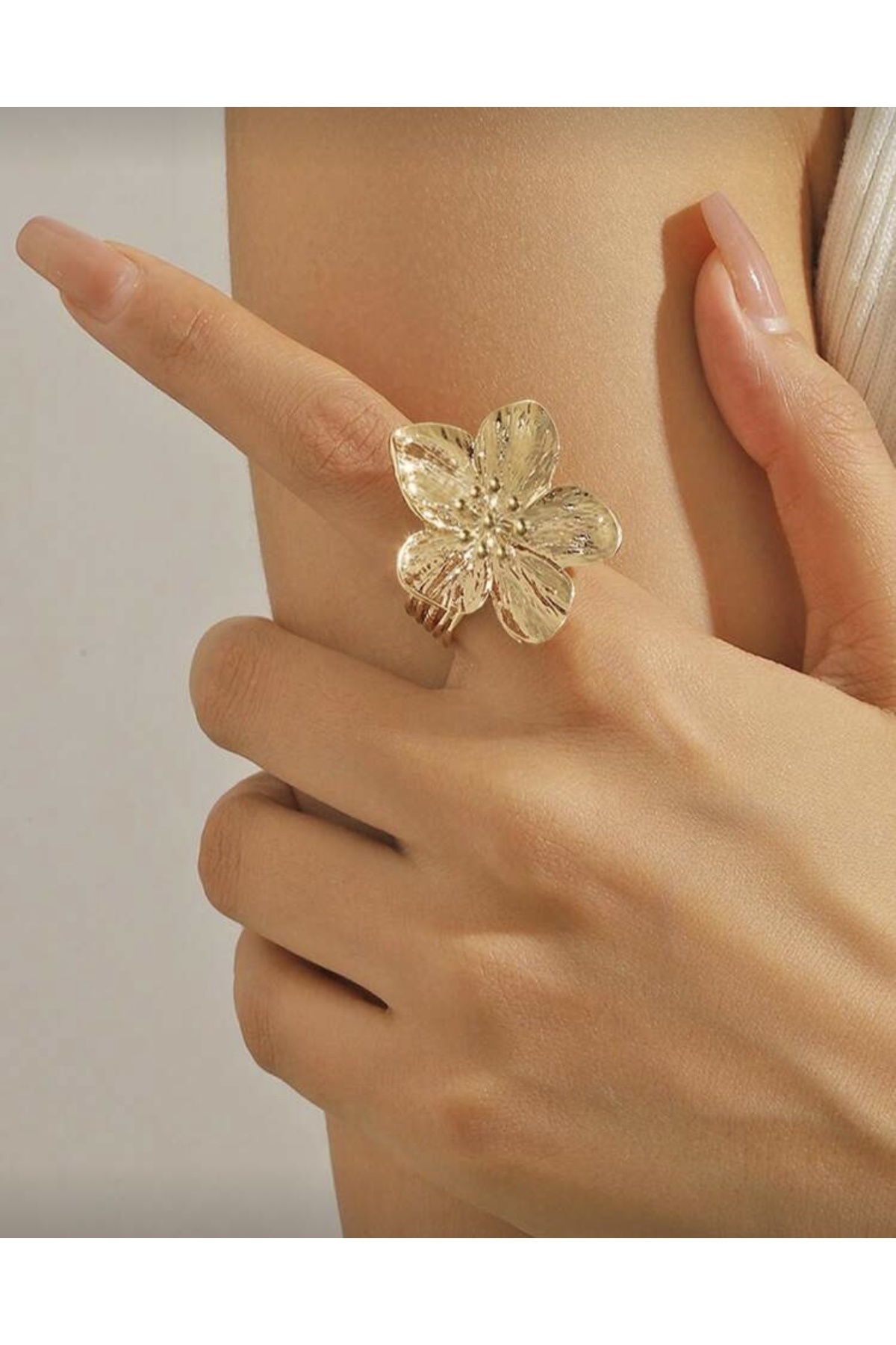 • Monalisatoka Kadın Gold Çiçek Ayarlanabilir Yüzük