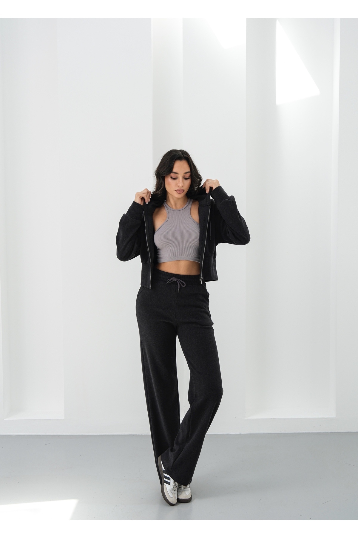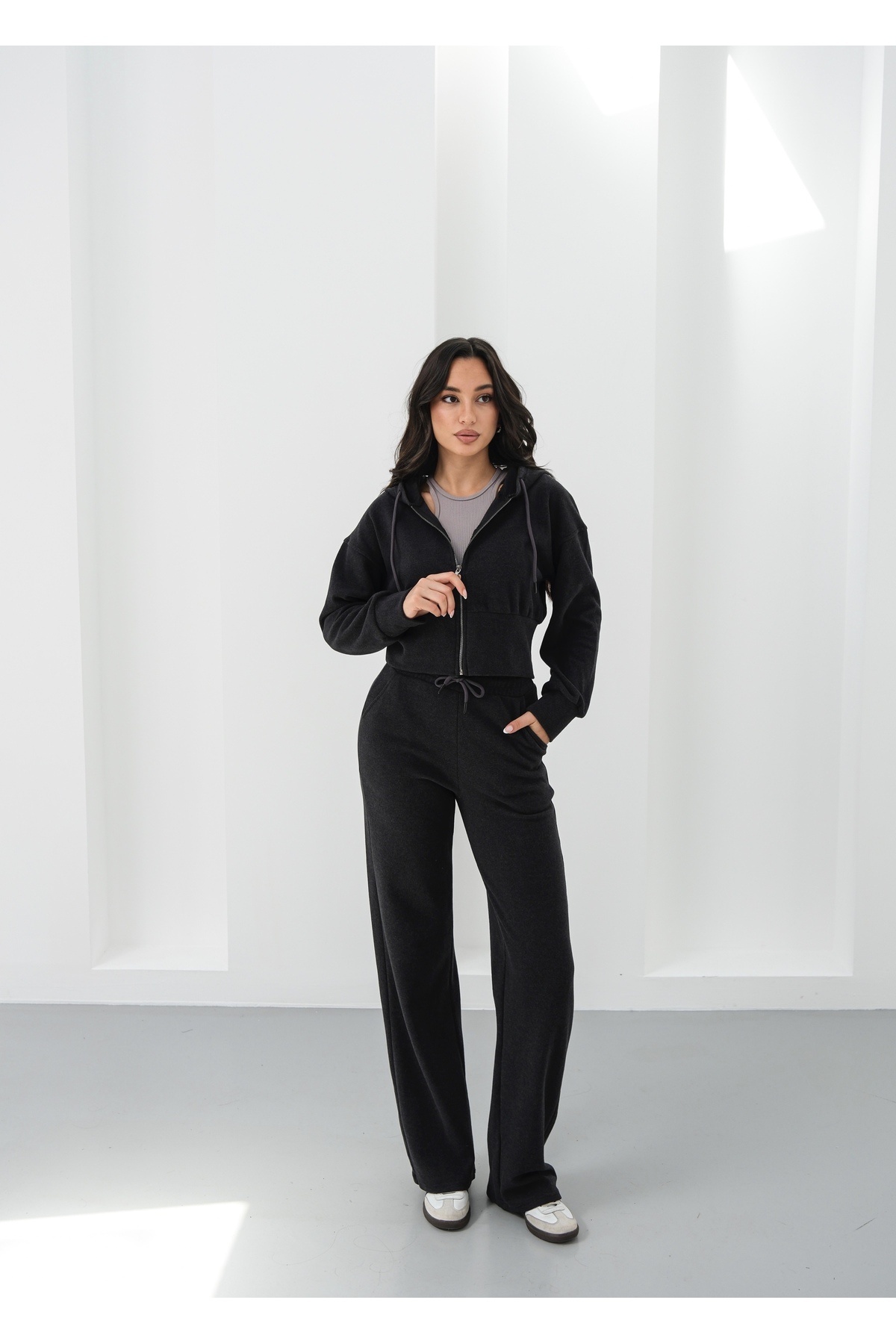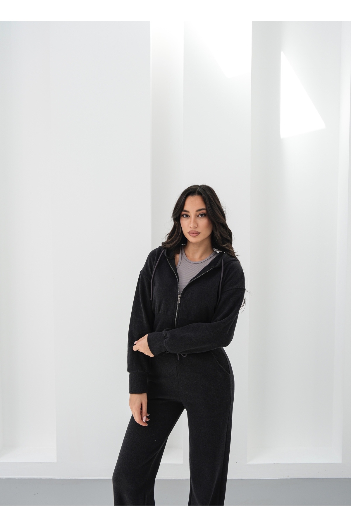 Liva Antrasit Kapüşonlu Hırka ve Eşofman Kalın Alt-Üst Takım