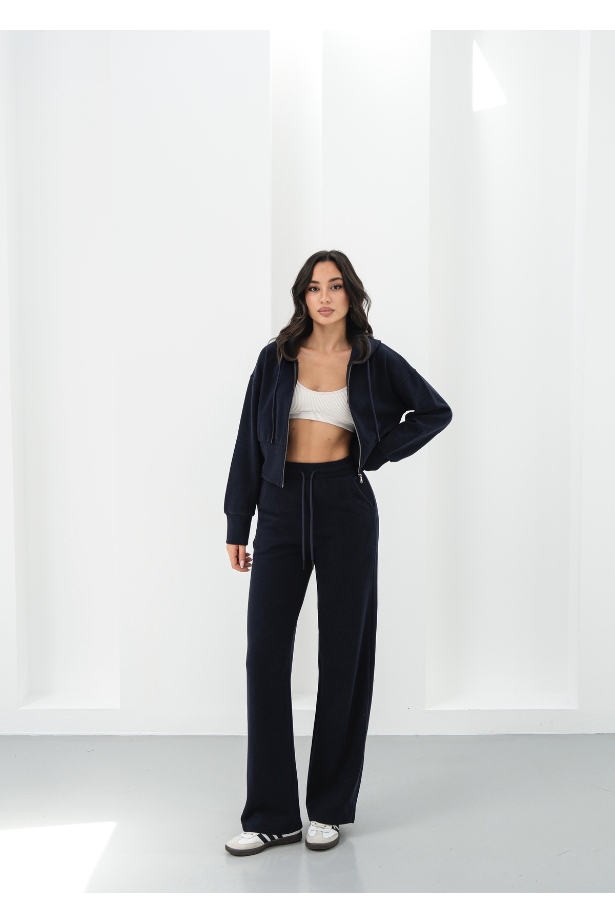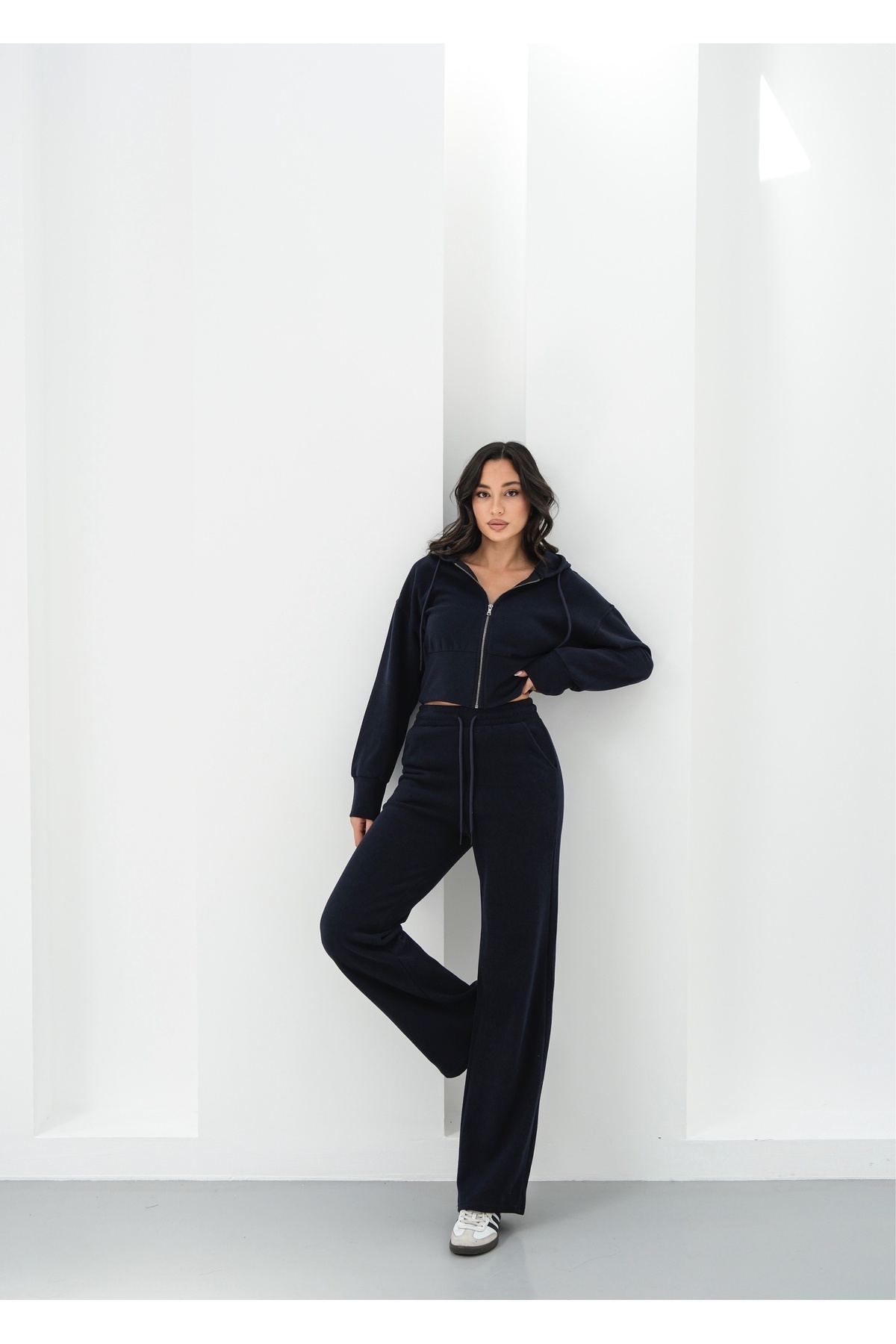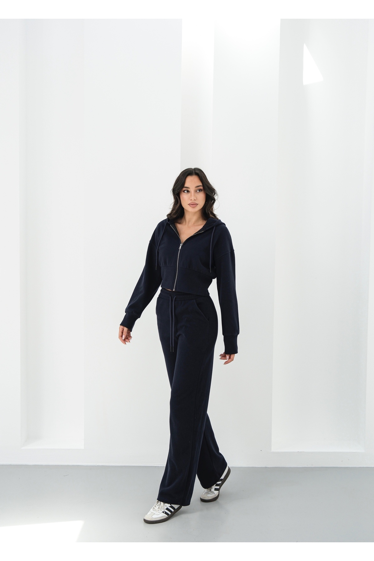 Liva Lacivert Kapüşonlu Hırka ve Eşofman Kalın Alt-Üst Takım
