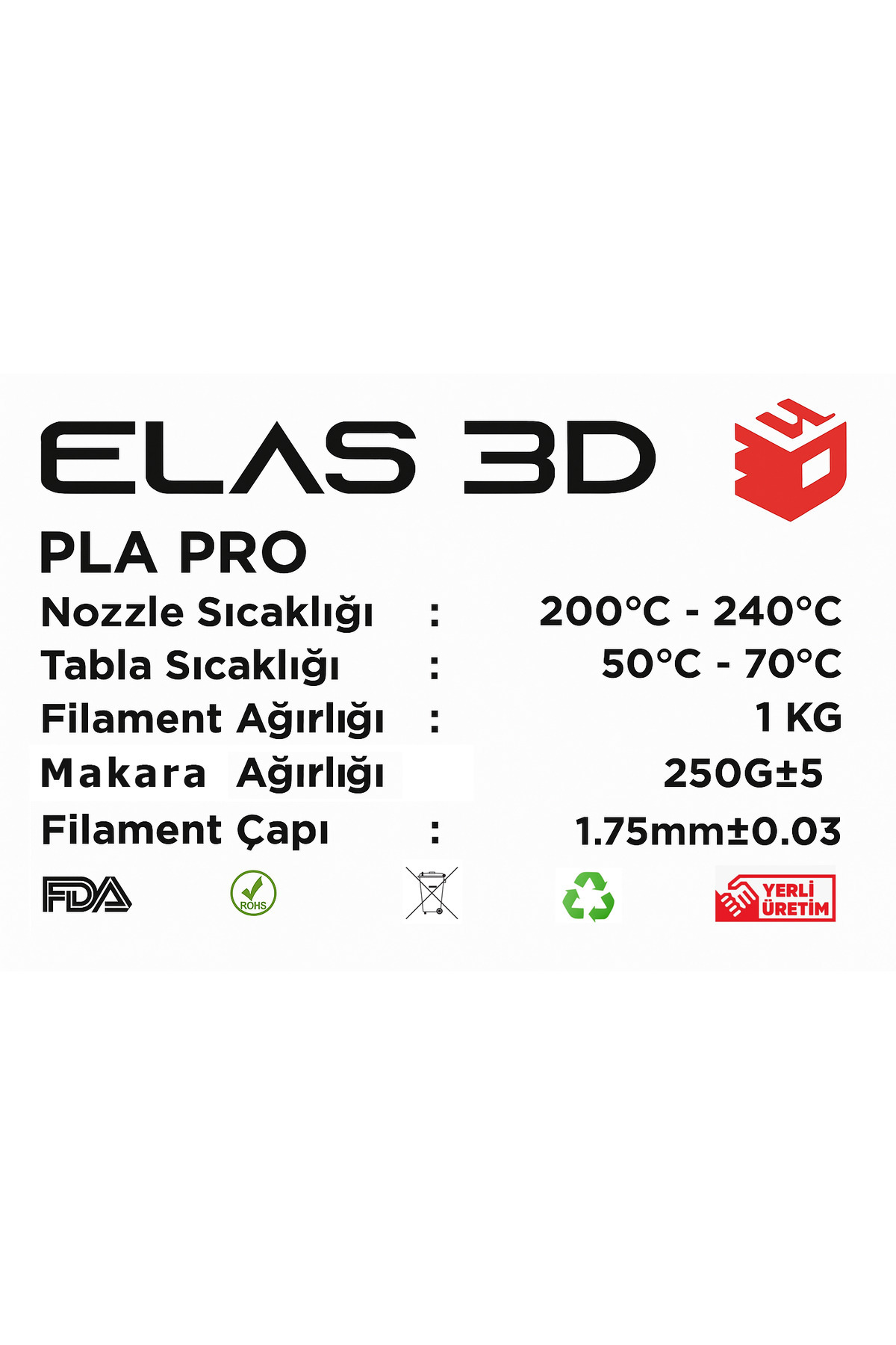 Elas 3D Pla Pro Filament 1.75mm 5 Kg Avantajlı Paket