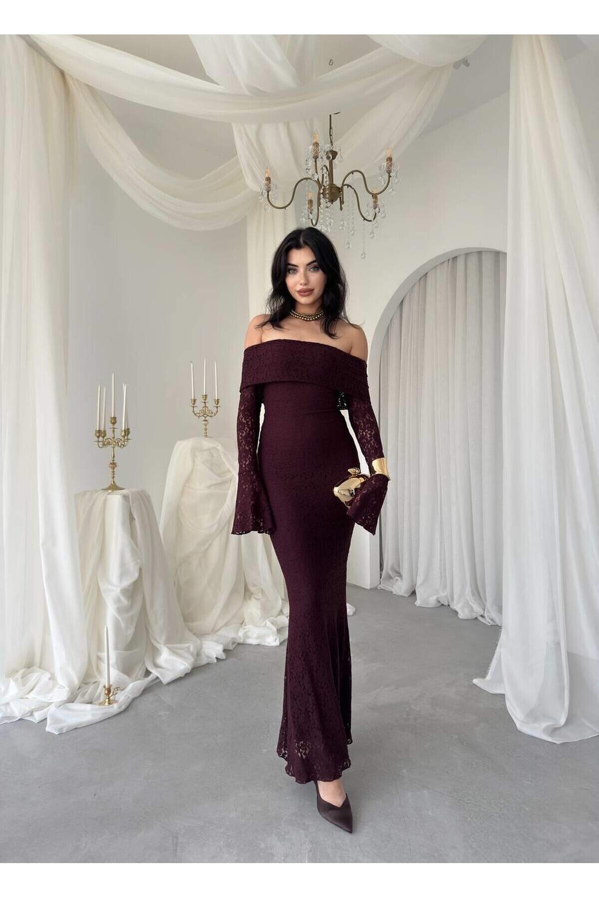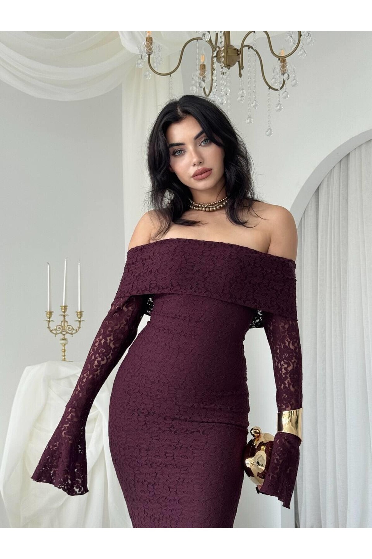 Yüksek Kalite, Yeni Sezon Beyaz Madonna Yaka Astarlı Midi Uzun Premium Tasarım Dantel Elbise