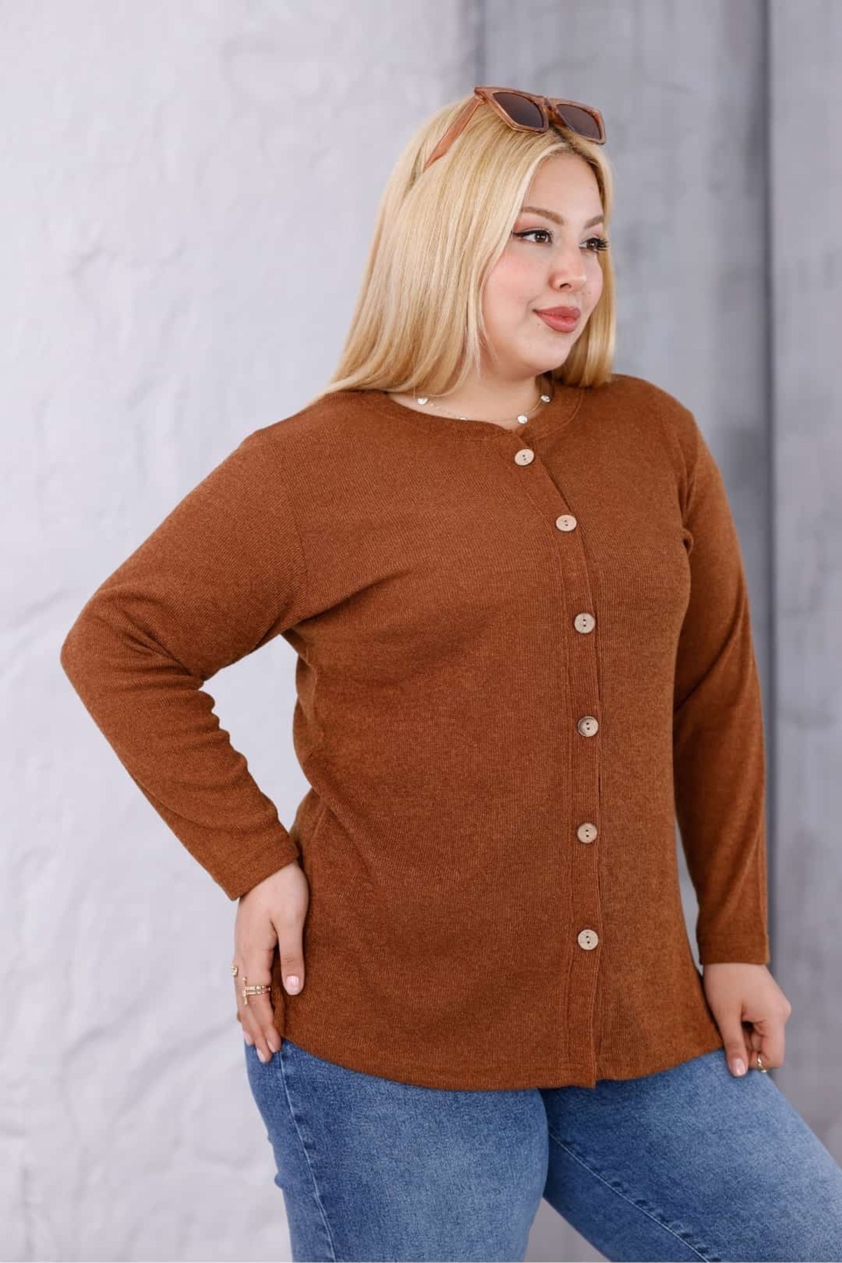 - Triko kumaşı sayesinde yumuşak dokusuyla konforlu bir deneyim sunar ve büyük beden koleksiyonuna özel olarak tasarlanmıştır.