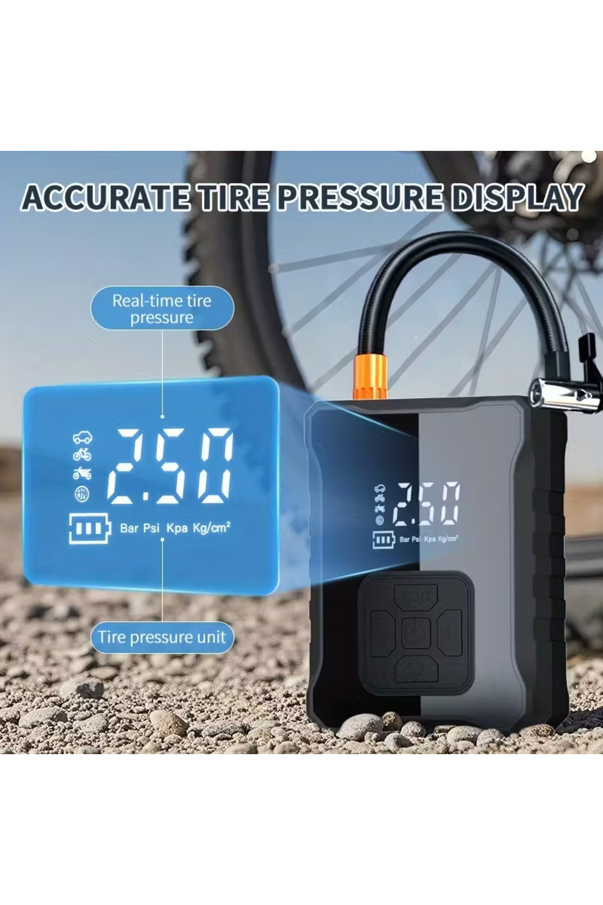 Kablosuz Lastik Şişirme Kompresörü USB Şarjlı 150 psi Powebank Led Çakar Özellikli Pompa