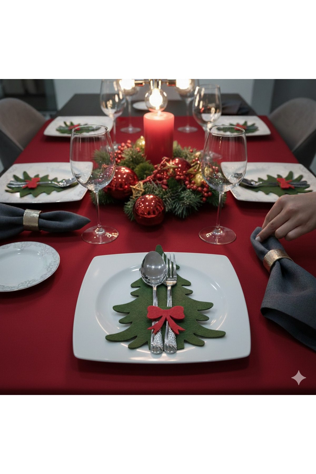 6 Adet Fiyonklu Dekoratif Çam Ağacı Keçe Peçetelik&Çatal Kaşıklık–Yılbaşı Masa Süsü&Sunum Aksesuarı
