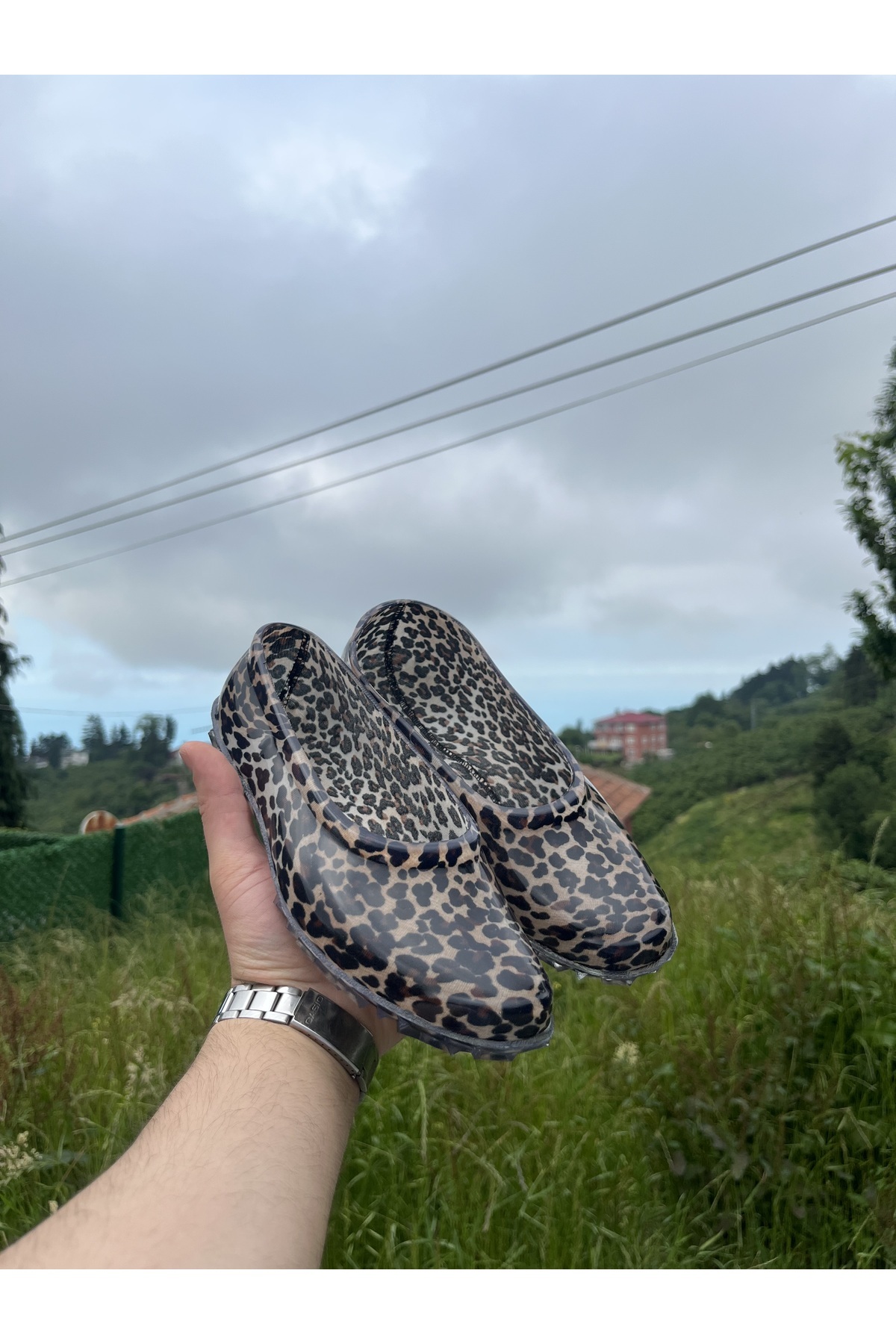Kadın Leopar Desenli Su Geçirmez Plastik Bahçe Ayakkabısı