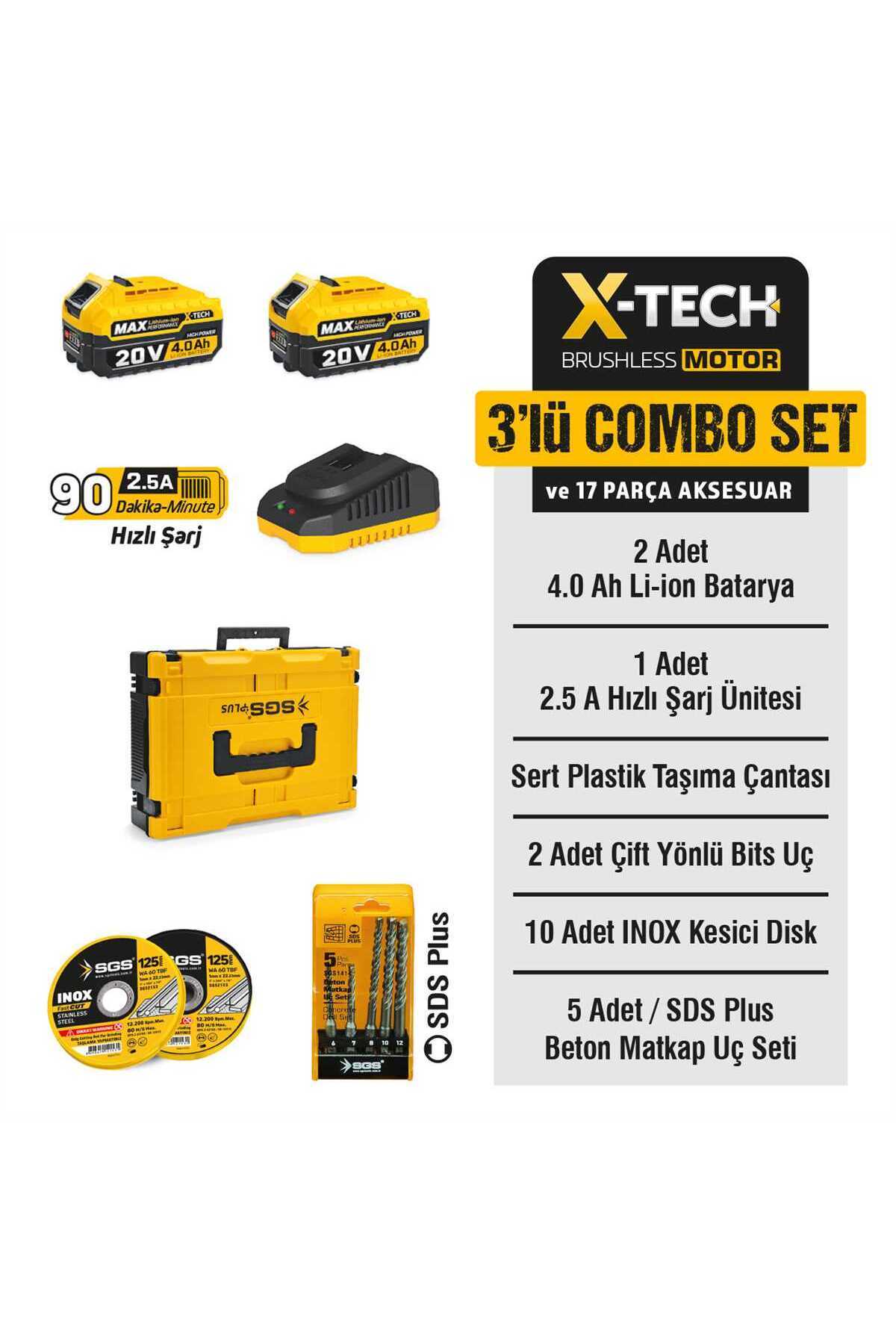 SGS5450 Akülü Vidalama Matkap - Kırıcı Delici - Avuç Taşlama Combo Set 3 Parça