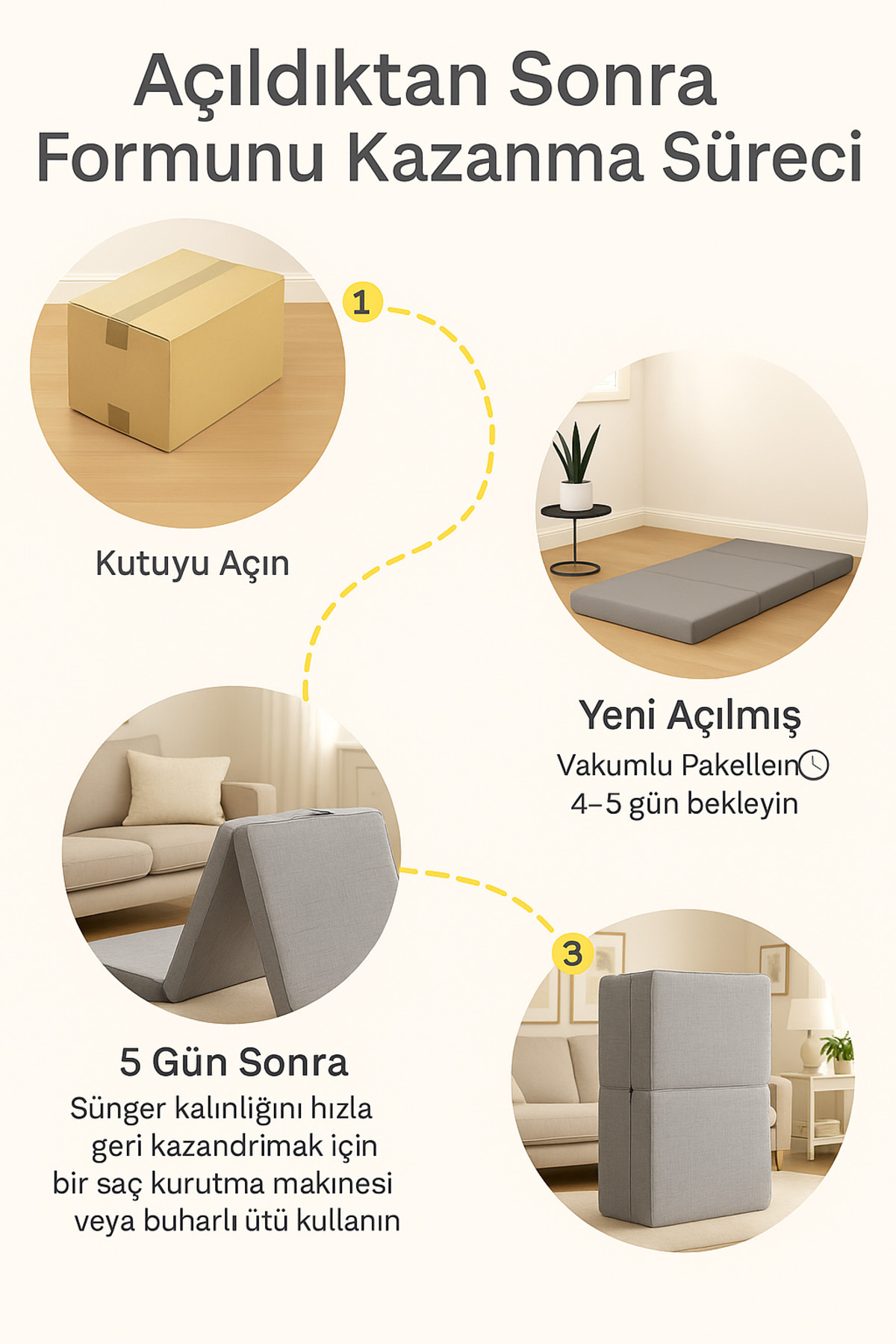 - Fermuarlı yapısı sayesinde, yatağı kolayca katlayabilir ve saklayabilirsiniz.