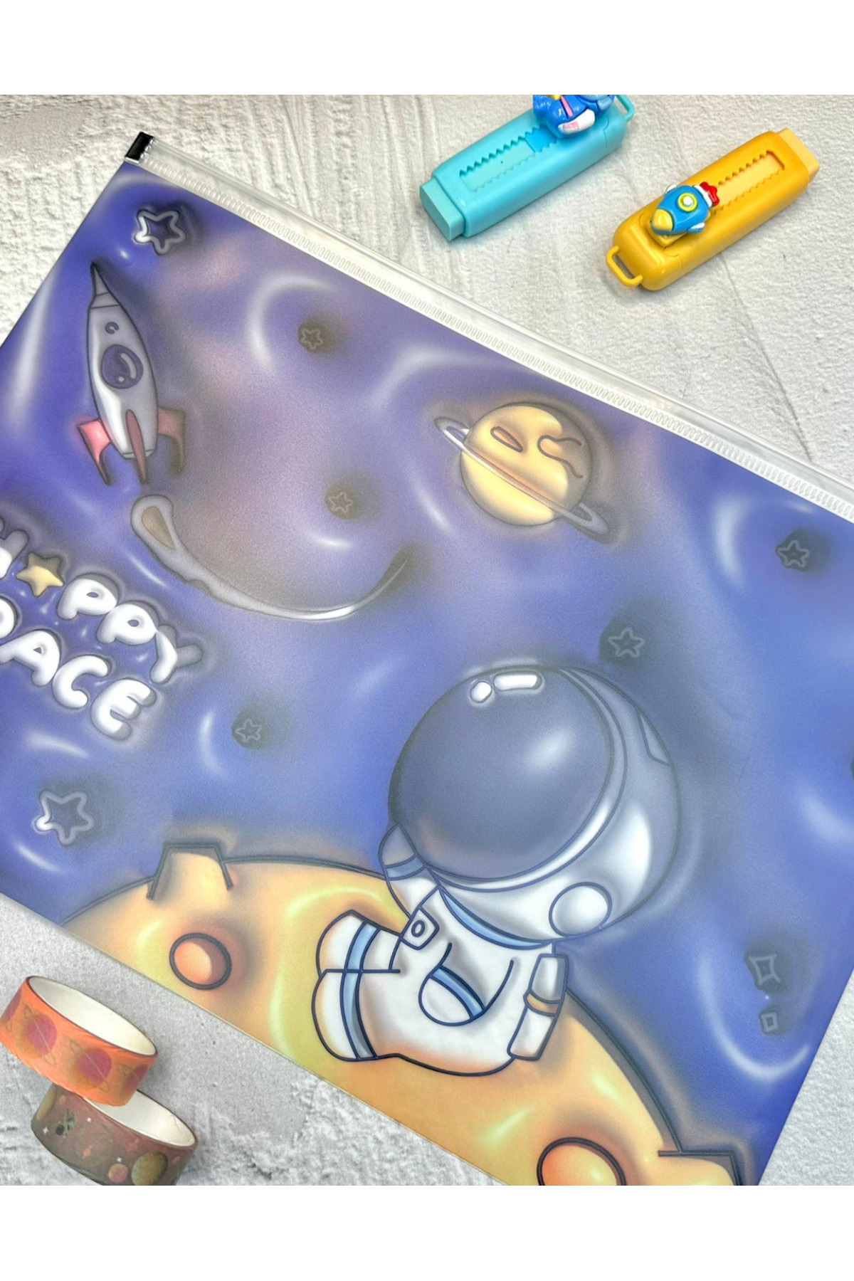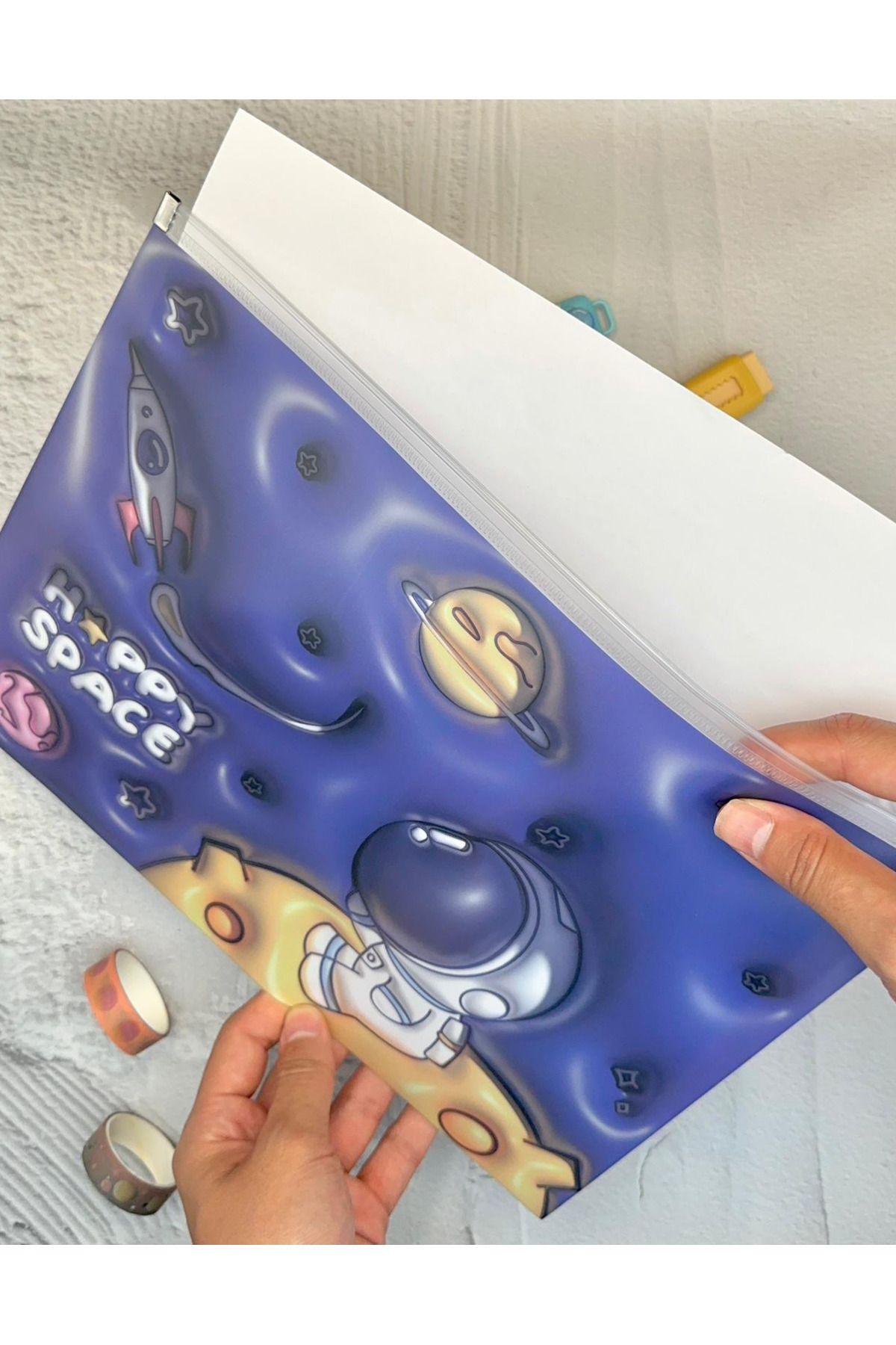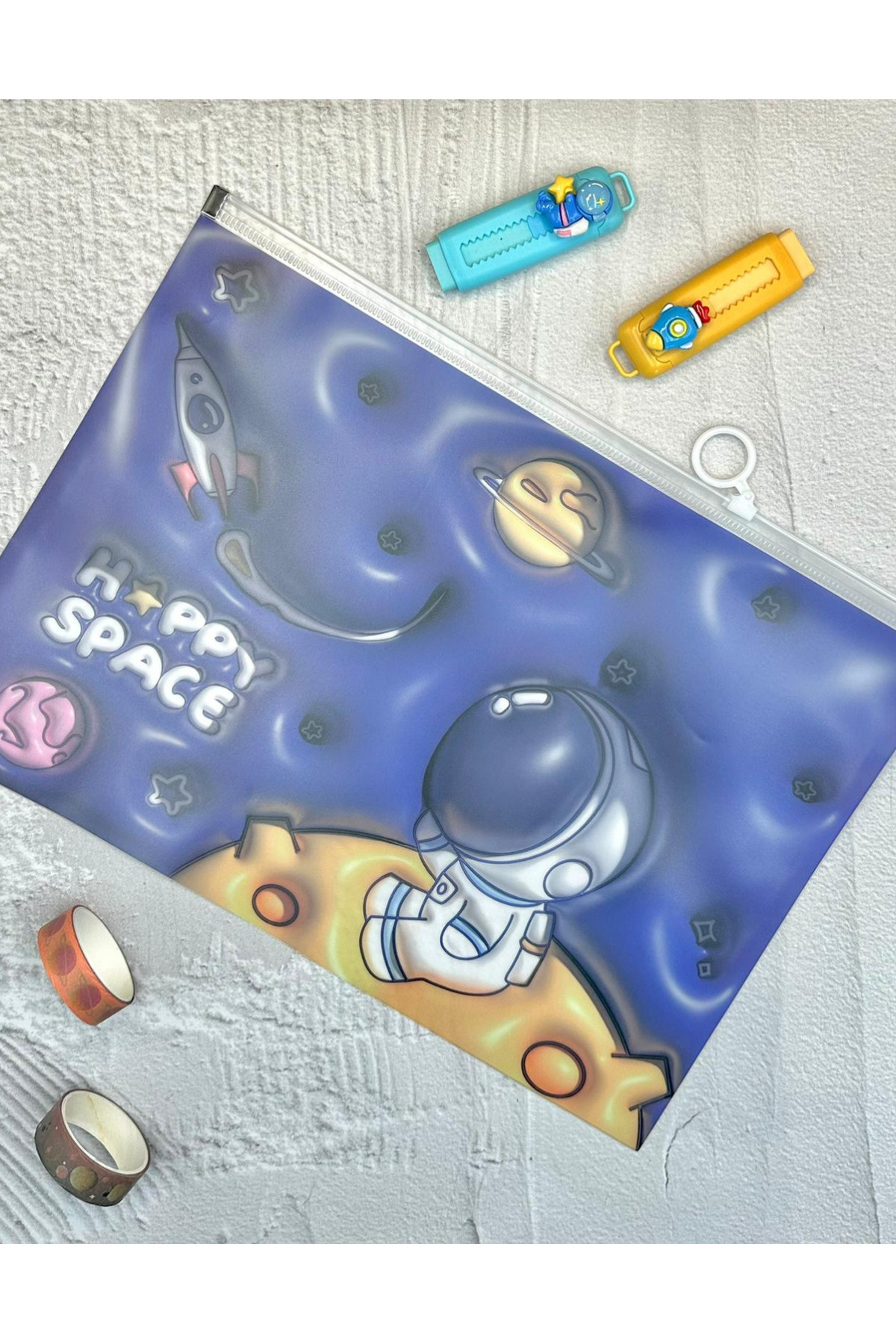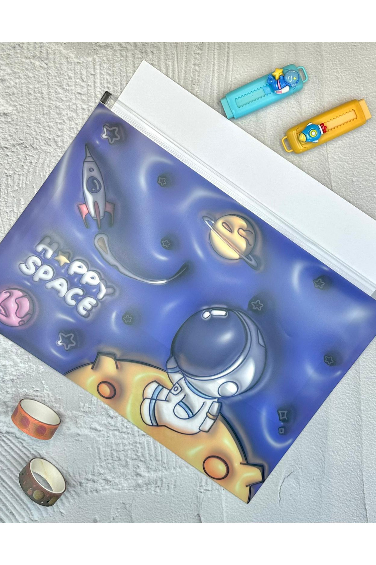 Gezegenler Diyarı Şeffaf Tek Bölmeli A4 Fermuarlı Dosya Klasörü / Belge Dosyası/Düzenleyici Klasör