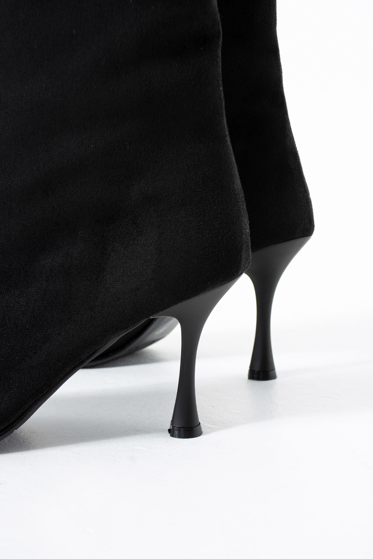 Aury Siyah Süet Geniş Konç Fermuarsız Kadın Topuklu Çizme