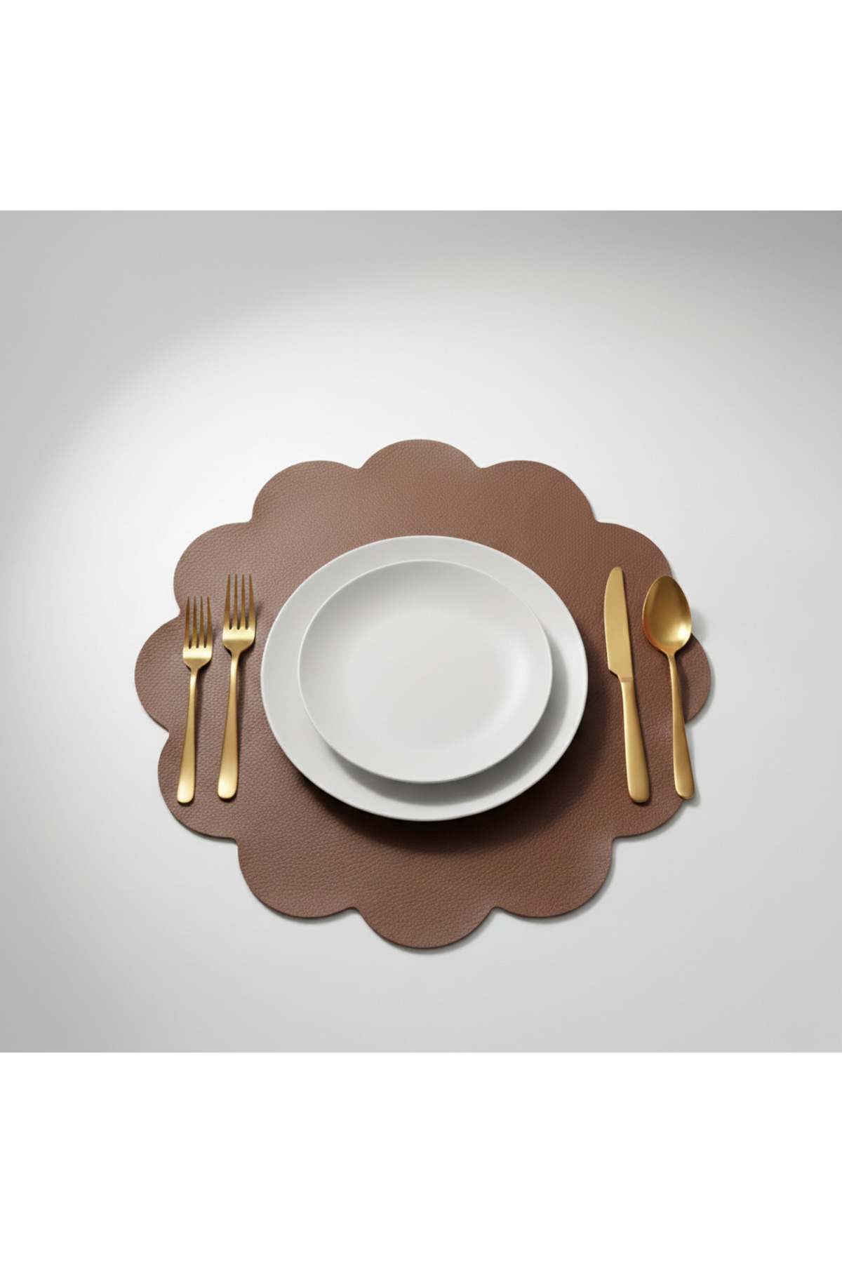 2 Adet Deri Kahverengi Amerikan Servis 33x33 cm-Kolay Silinebilir Supla-Çiçek Amerikan Servis