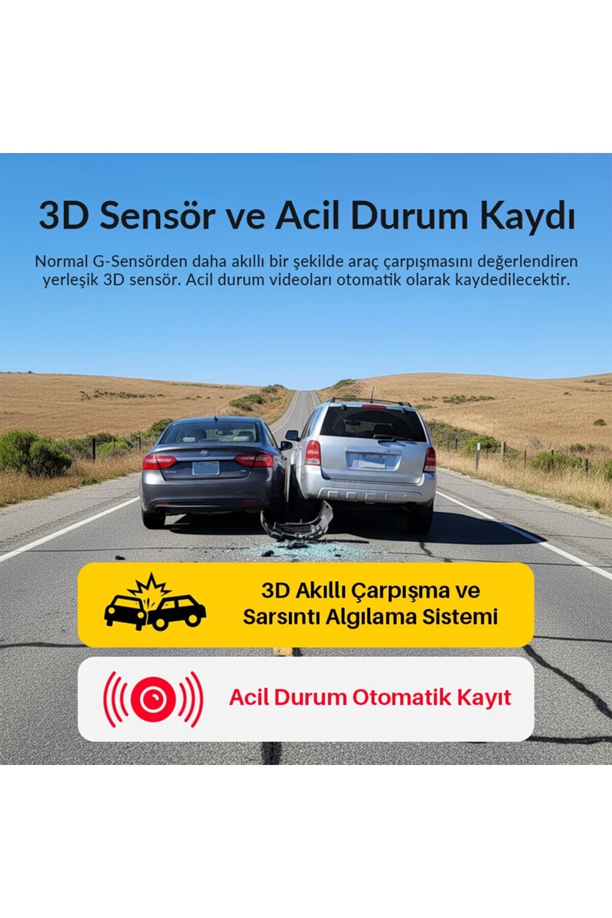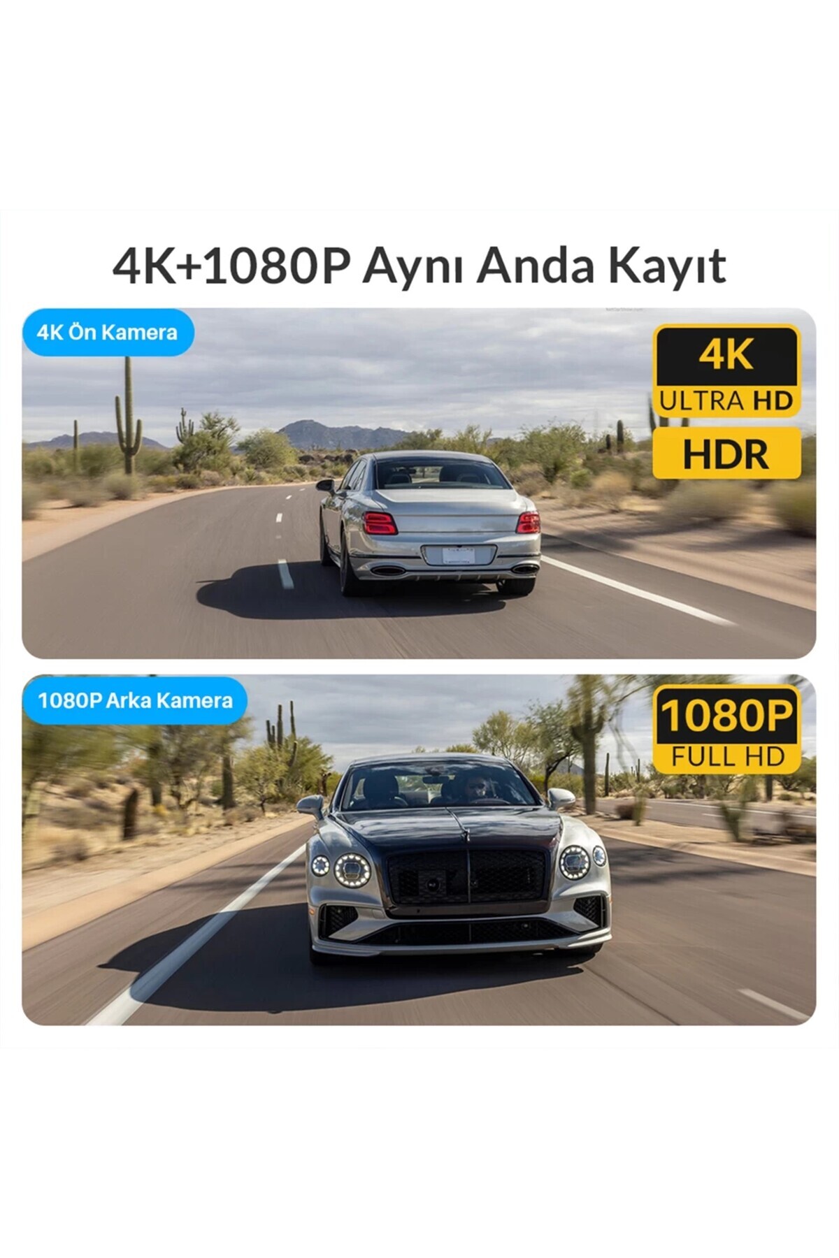 D7 2 Kameralı Ön ve Arka 4K+1080P HDR Wi-Fi 6 ve GPS'li Araç Kamerası + 64GB Hafıza Kartı