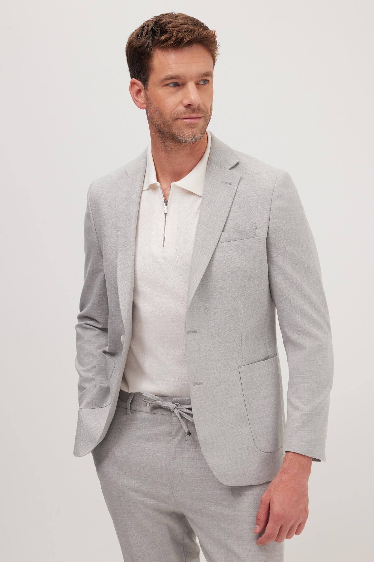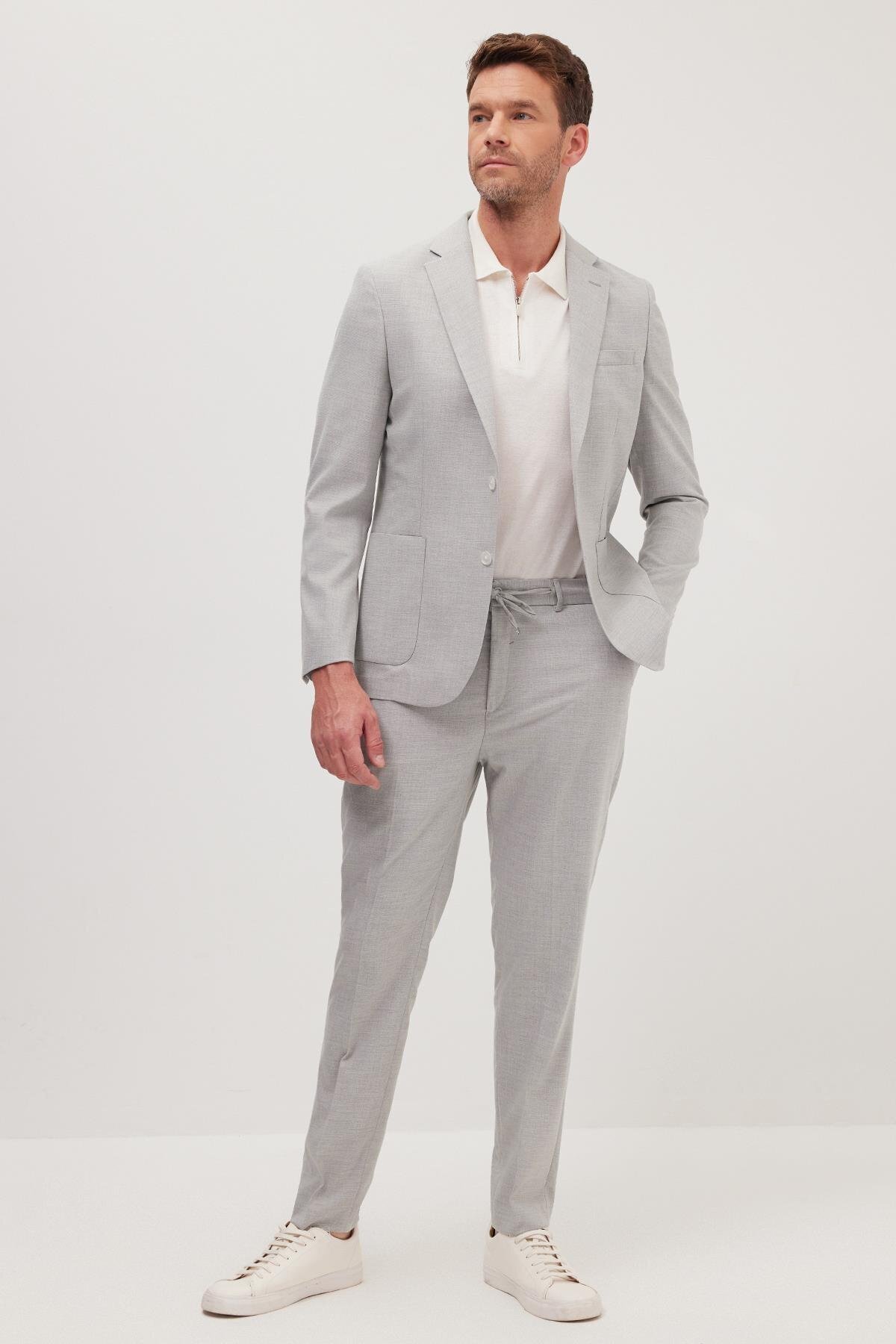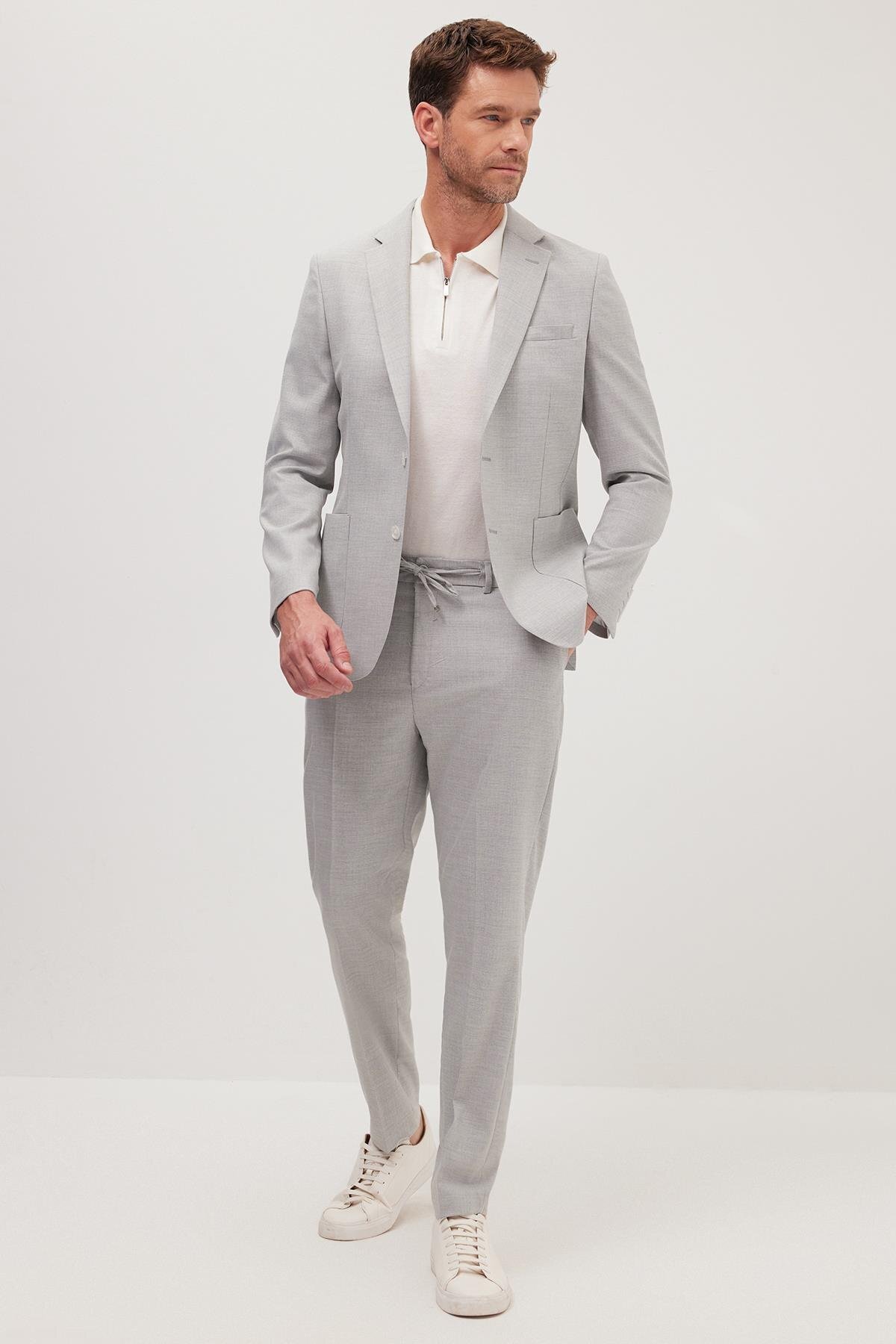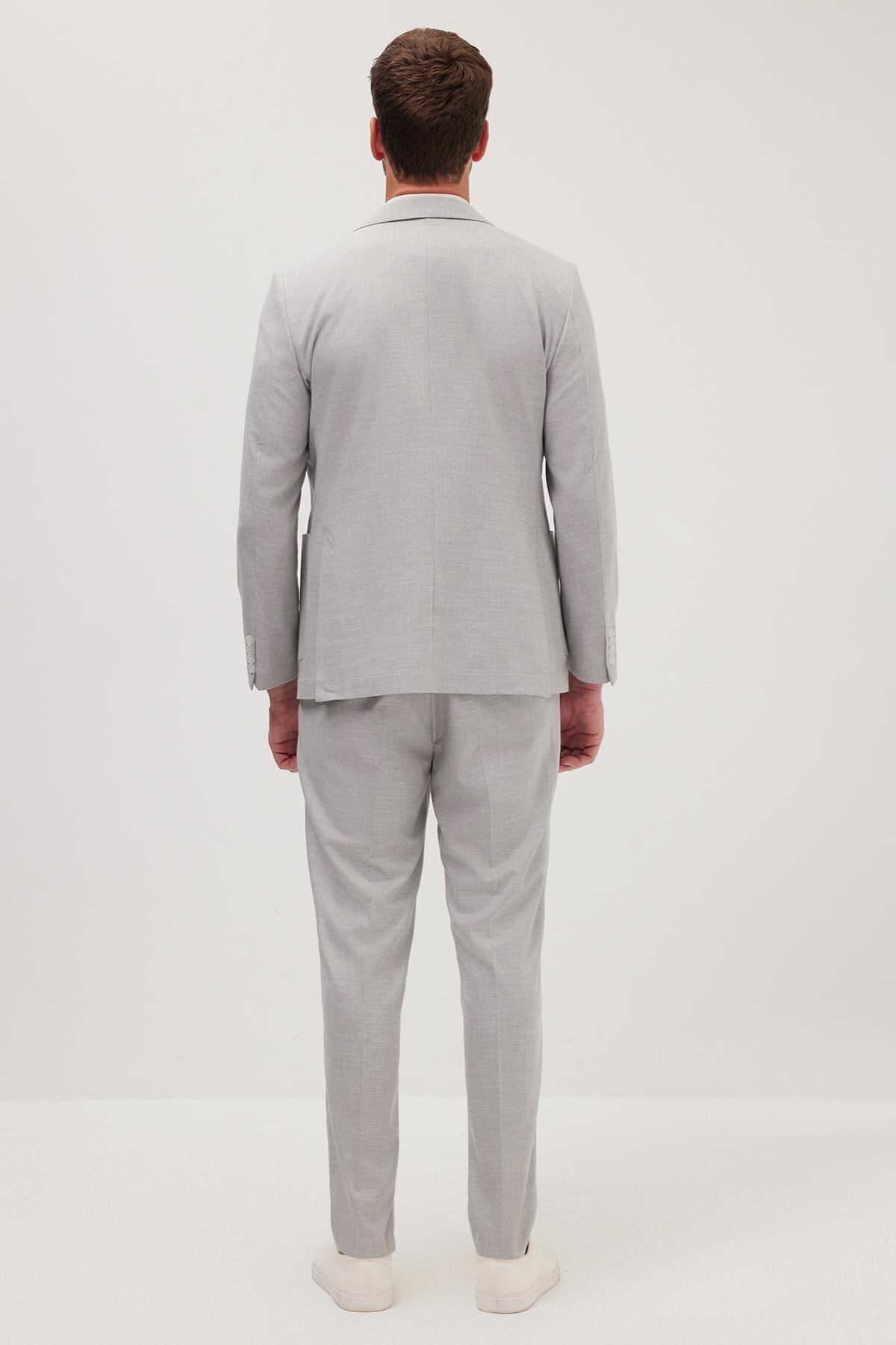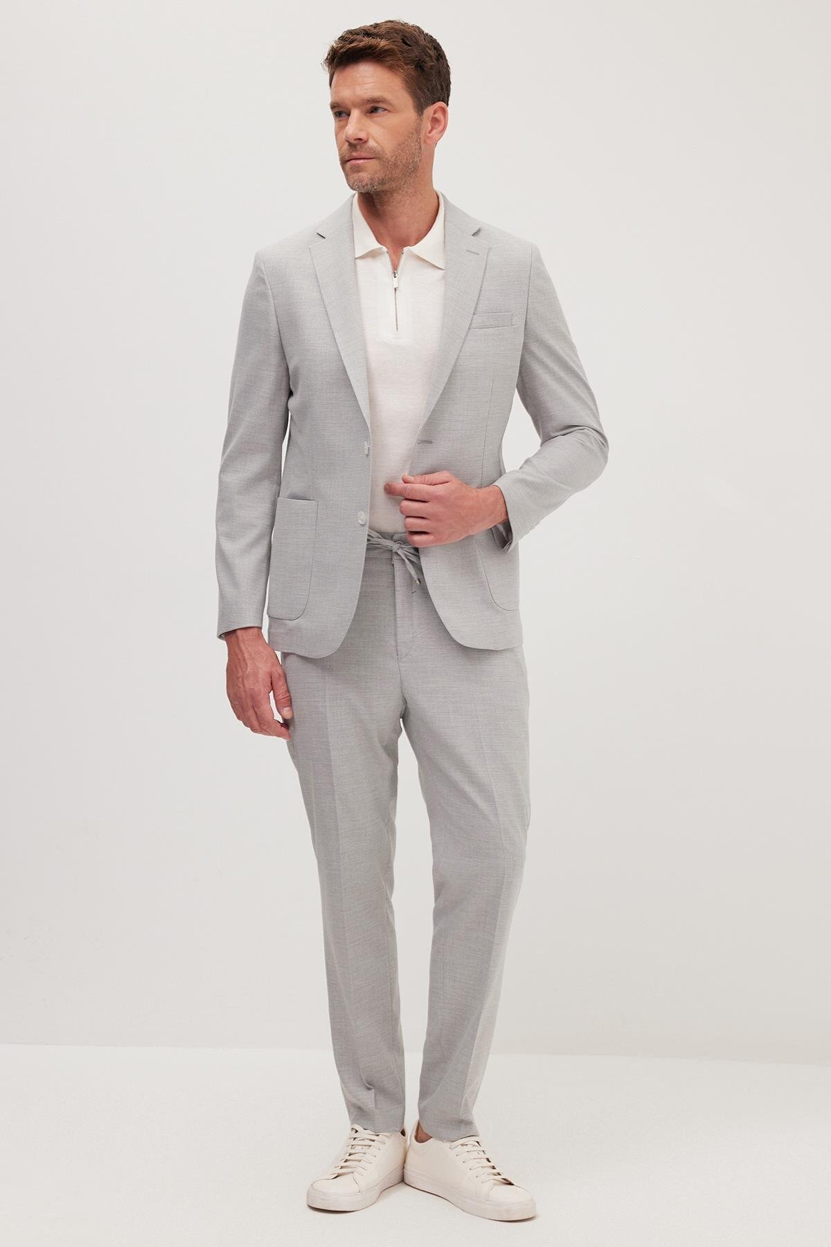 Erkek Slim Fit Mono Yaka Likralı Esnek Kumaş Gri Takım Elbise