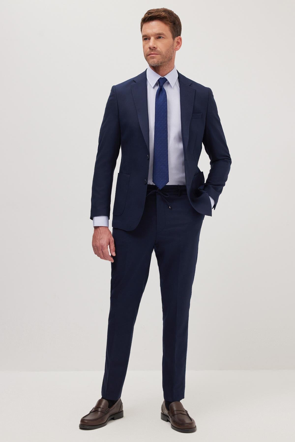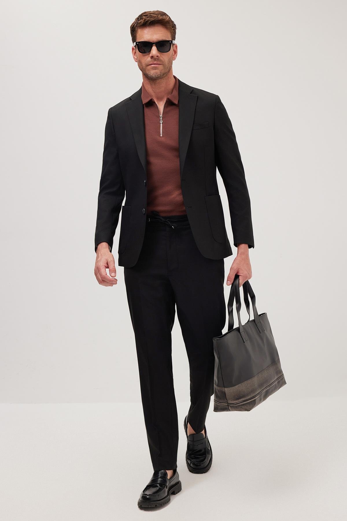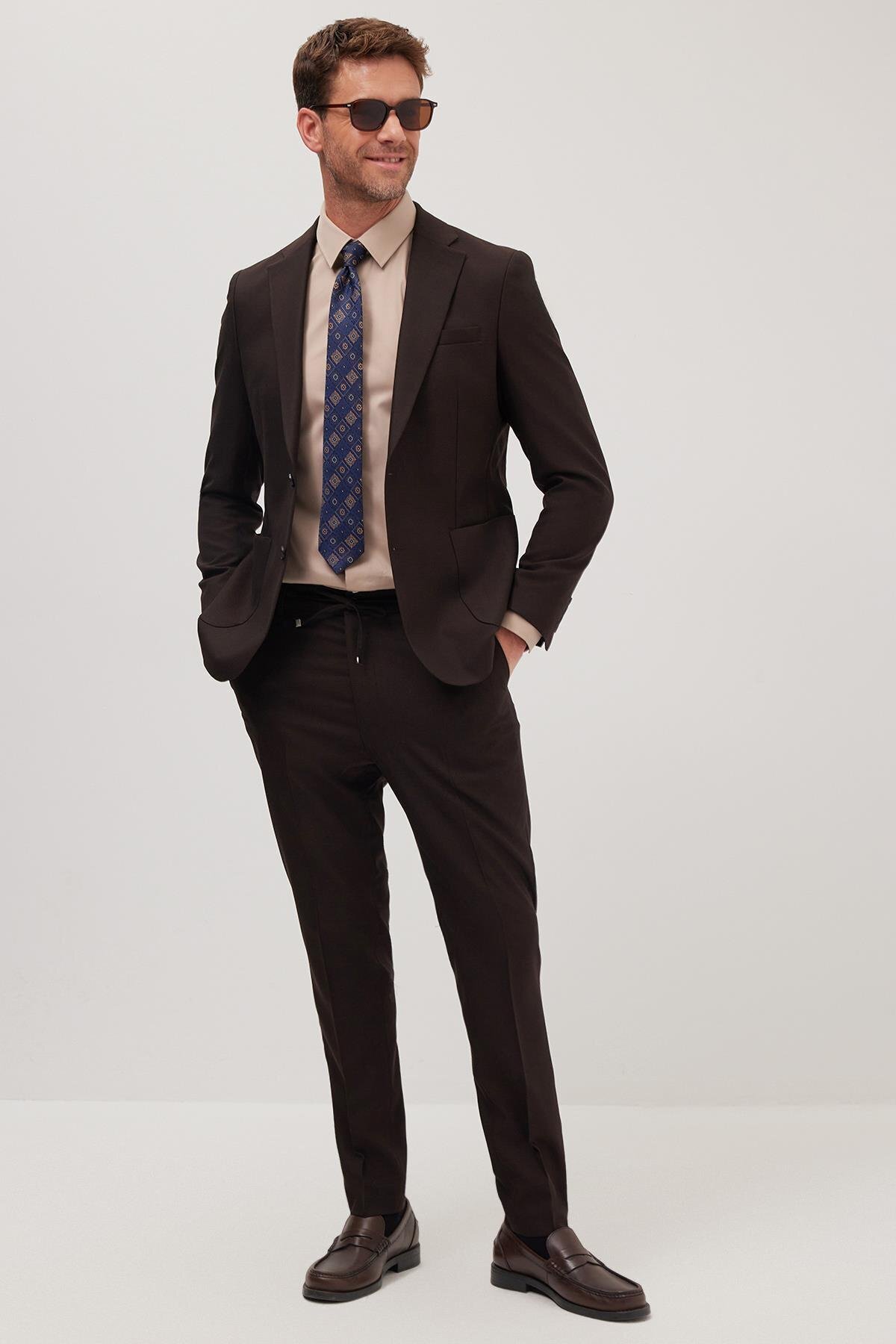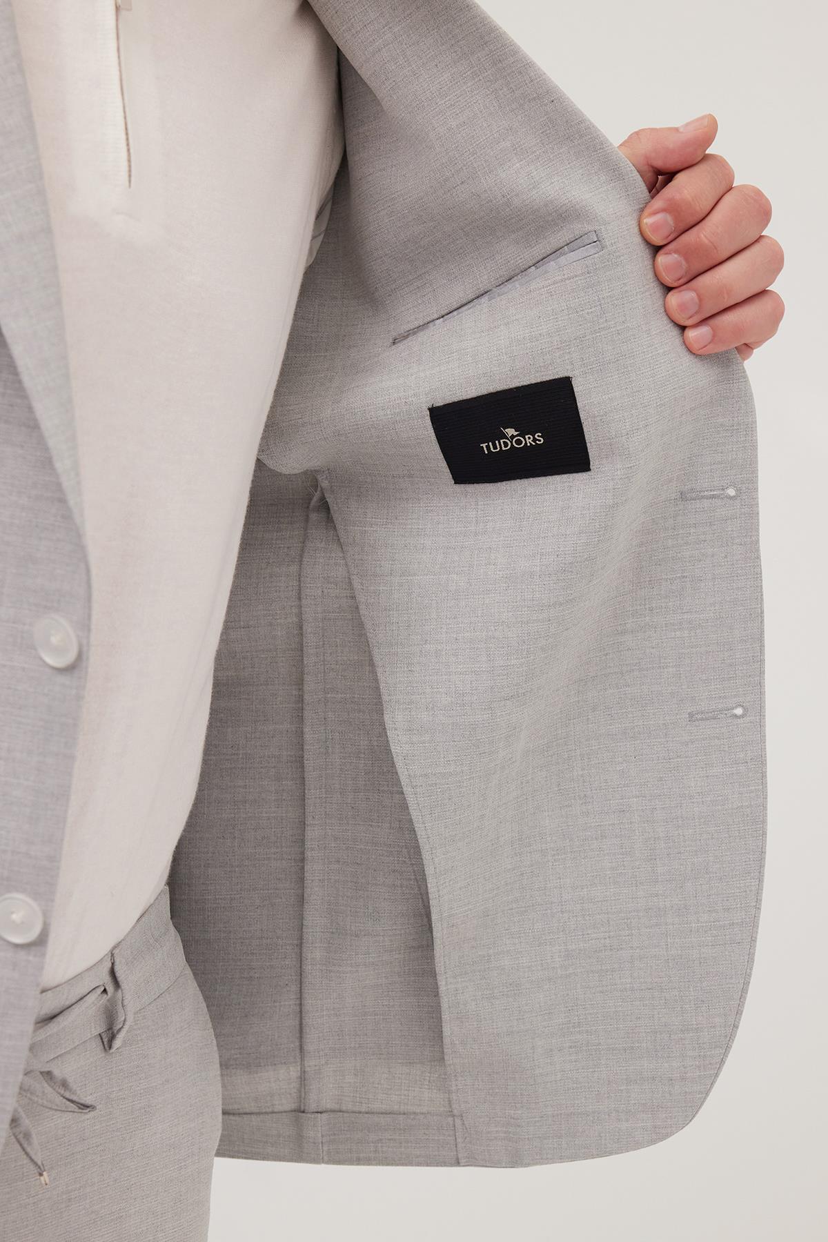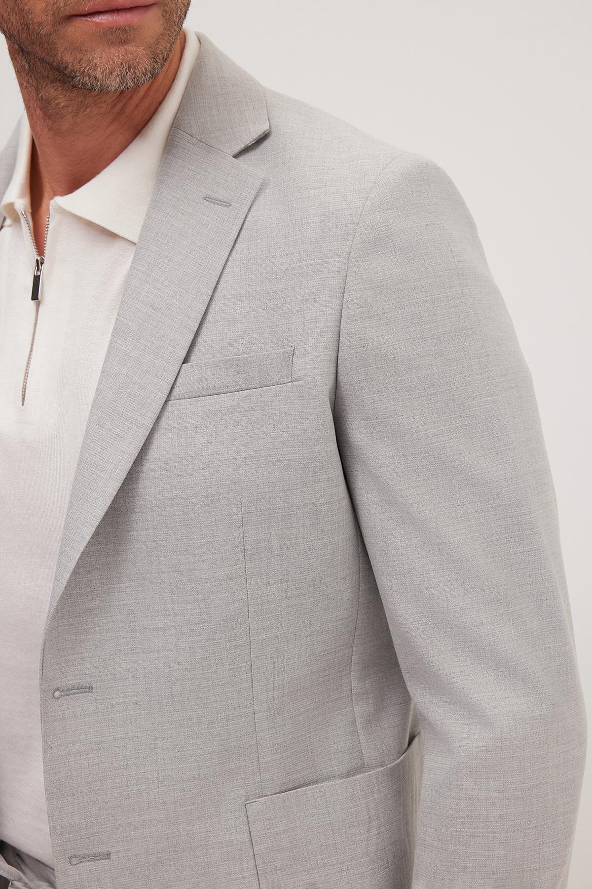 Erkek Slim Fit Mono Yaka Likralı Esnek Kumaş Gri Takım Elbise