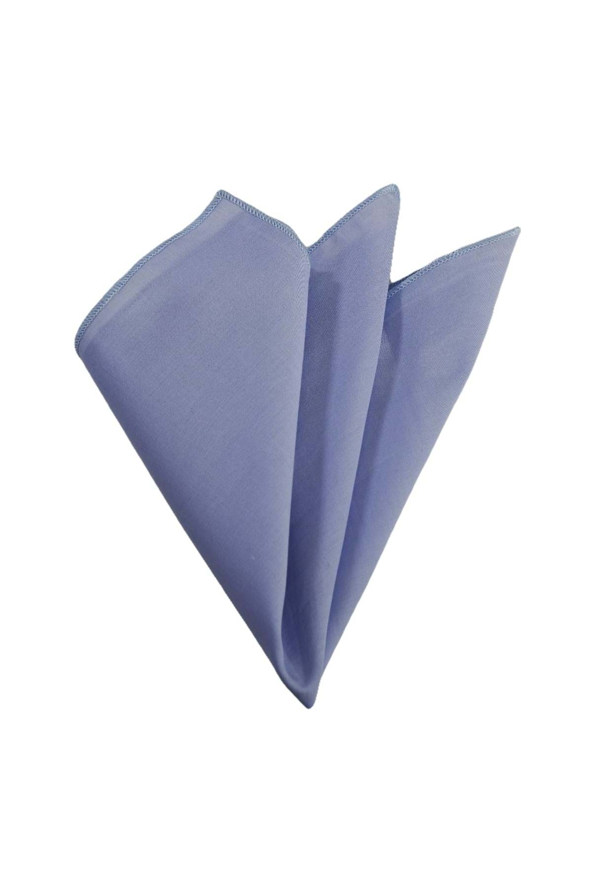 Gök Mavi İnce Vual Dokuma 100% Pamuk Cep Aksesuarı Yaka Mendili