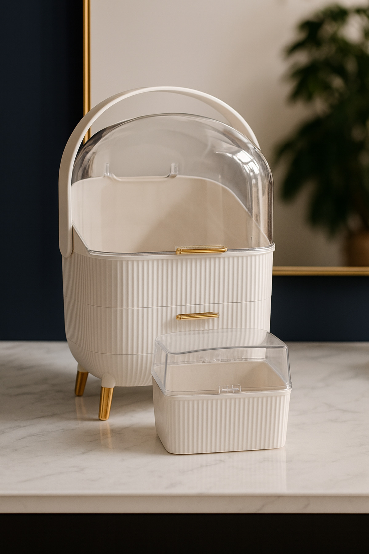 Neden Bu Set? ✔️ Tüm makyaj malzemeleriniz için tam çözüm ✔️ Şeffaf kapak ile hijyenik ve pratik kullanım ✔️ Şık tasarımıyla masa üstlerinde dekoratif görünüm ✔️ Dayanıklı ve uzun ömürlü malzeme ✨ Bu set ile makyaj köşeniz hem düzenli hem de göz alıcı olacak!