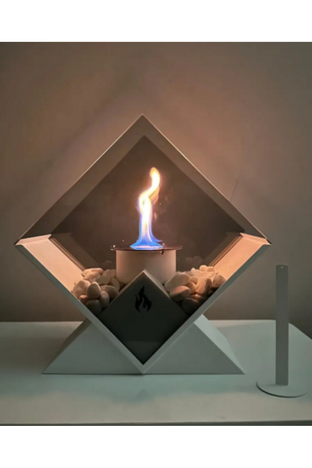 MASA ÜSTÜ BEYAZ ŞÖMİNE FÜME CAMLI