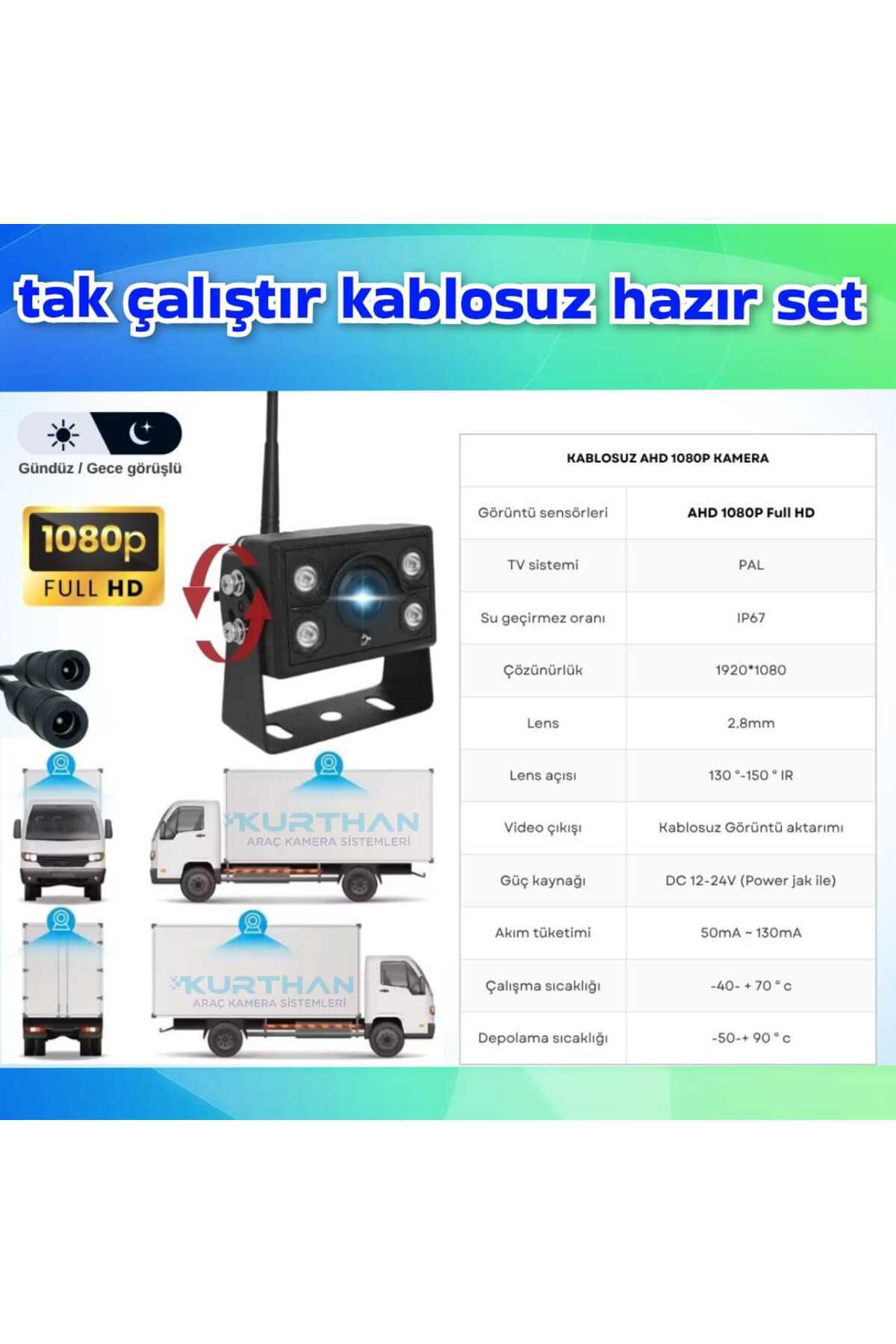 3 ADET KABLOSUZ KAMERA AHD 1080P 7 İNÇ DVR MONİTÖR BSD KÖR NOKTA SİSTEMLİ 12 24 V