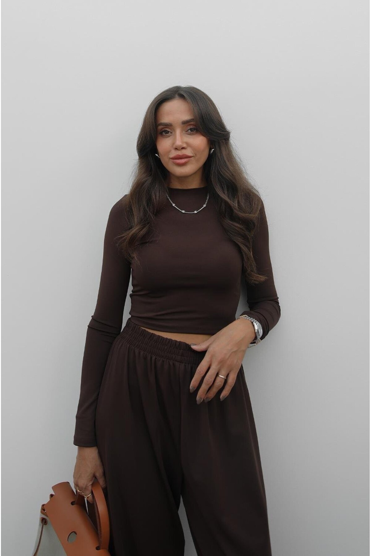 UZUN KOLLU, BİSİKLET YAKA, HAFİF TRANSPARAN BLUZ YÜKSEK BEL, BELİ LASTİKLİ PANTOLON NORMAL KALIP Model Ölçüleri : 166cm / 49kg Modelin Beden : S/36 Beden Ürün İçeriği : %90 Polyester %10 Cotton Ürün Boyu : Üst: 51cm Alt: 107cm