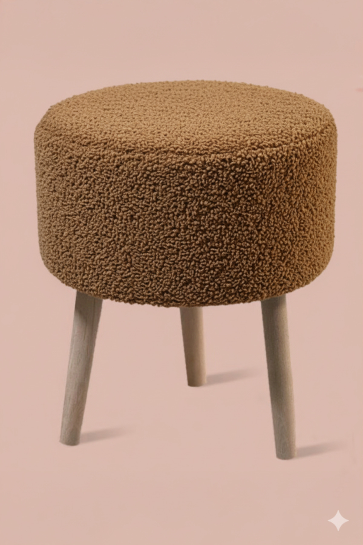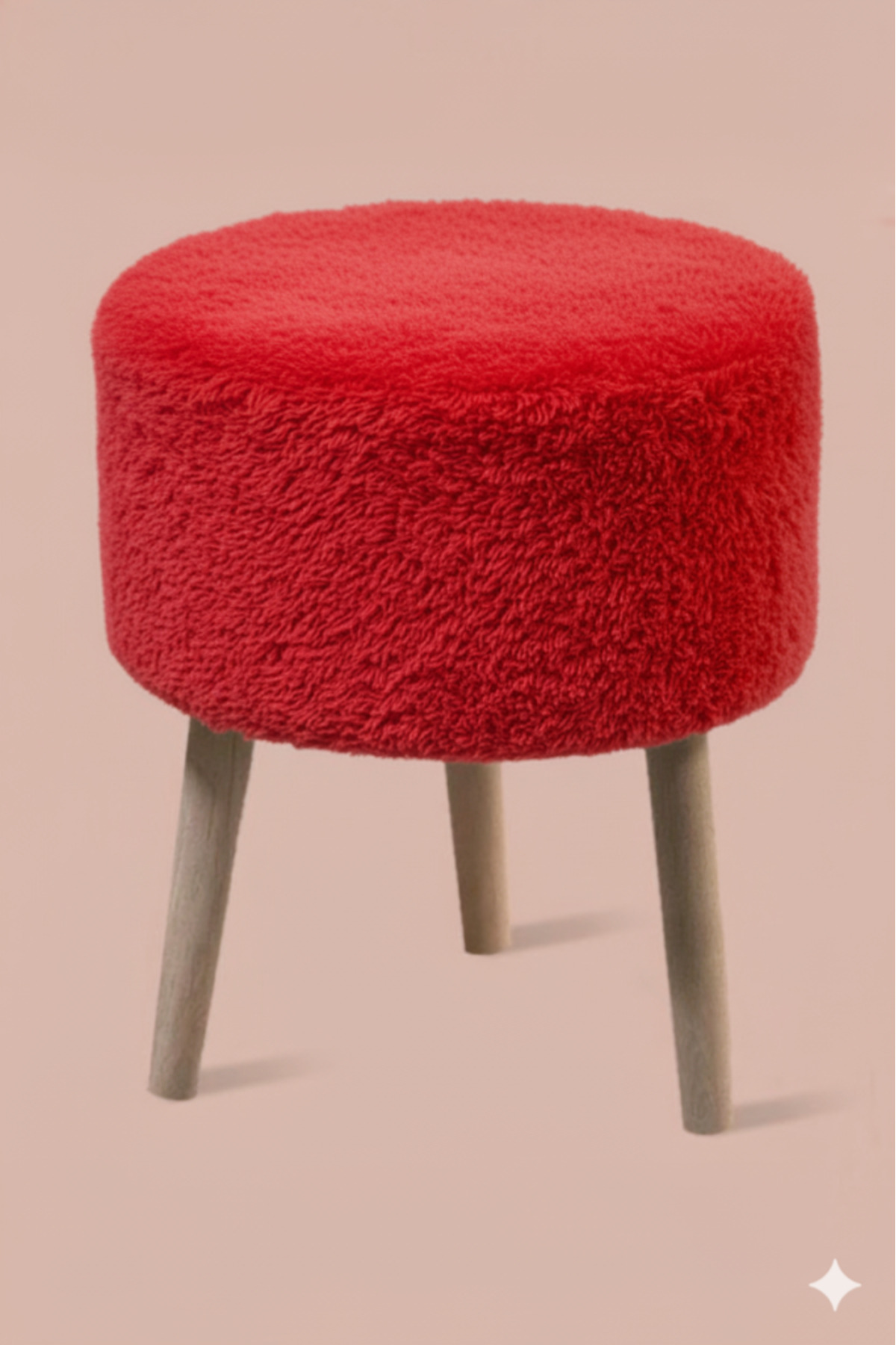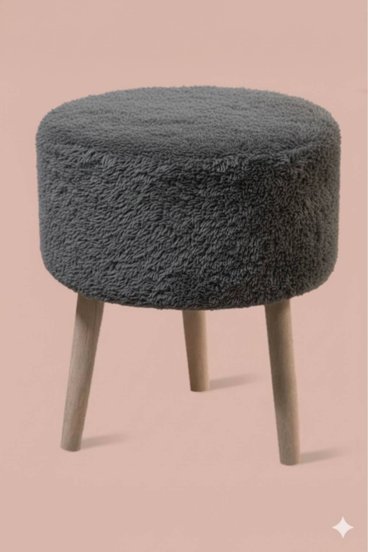 3 Ayaklı Mini Puf - Antrasit Teddy Peluş Kumaşlı Mini Tabure