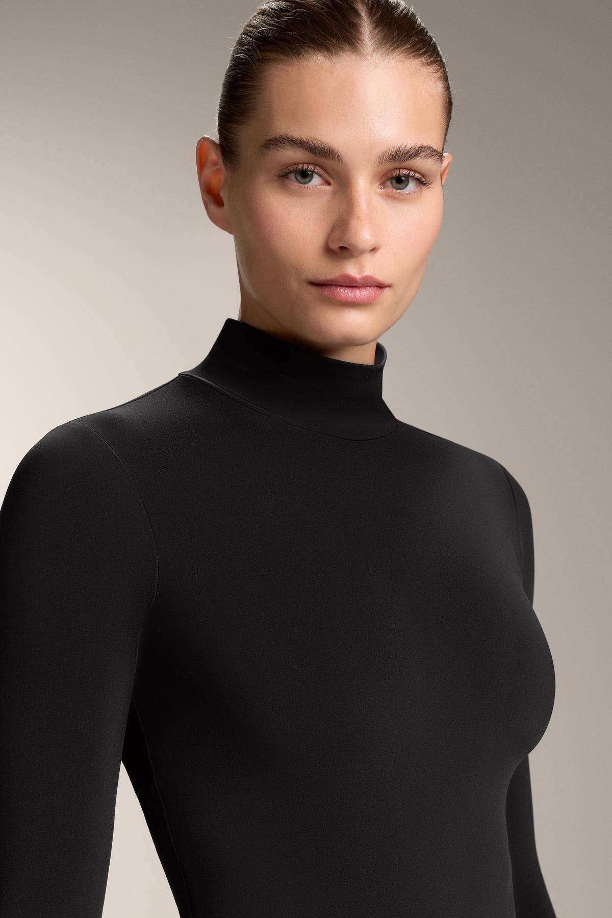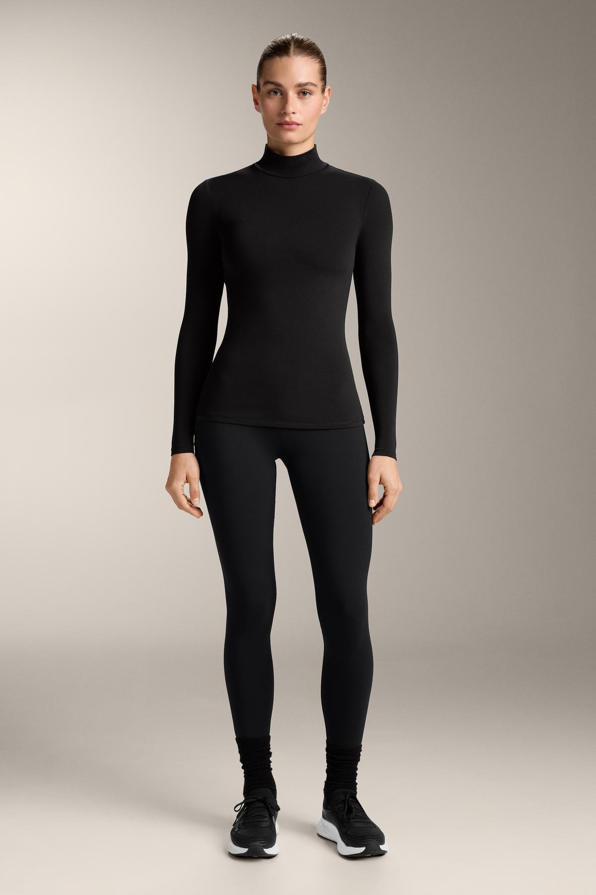 Uzun kollu ve yüksek yakalı, temel katman tişört.