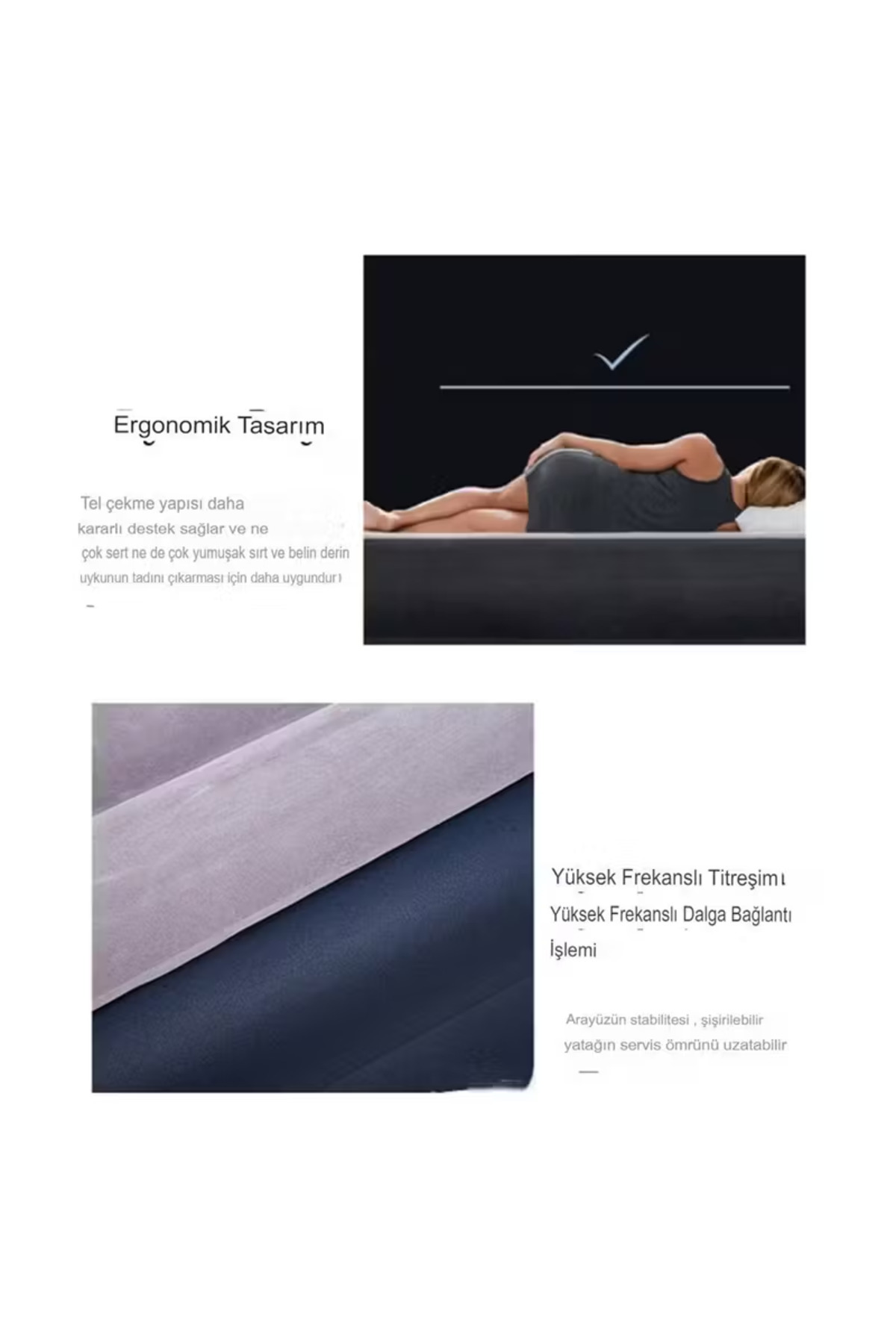 Ürün Açıklaması (Çift Havalı Yatak + Pompa) Bu çift havalı yatak, kamp yapmak, misafir ağırlamak veya araç içi kullanım için mükemmeldir