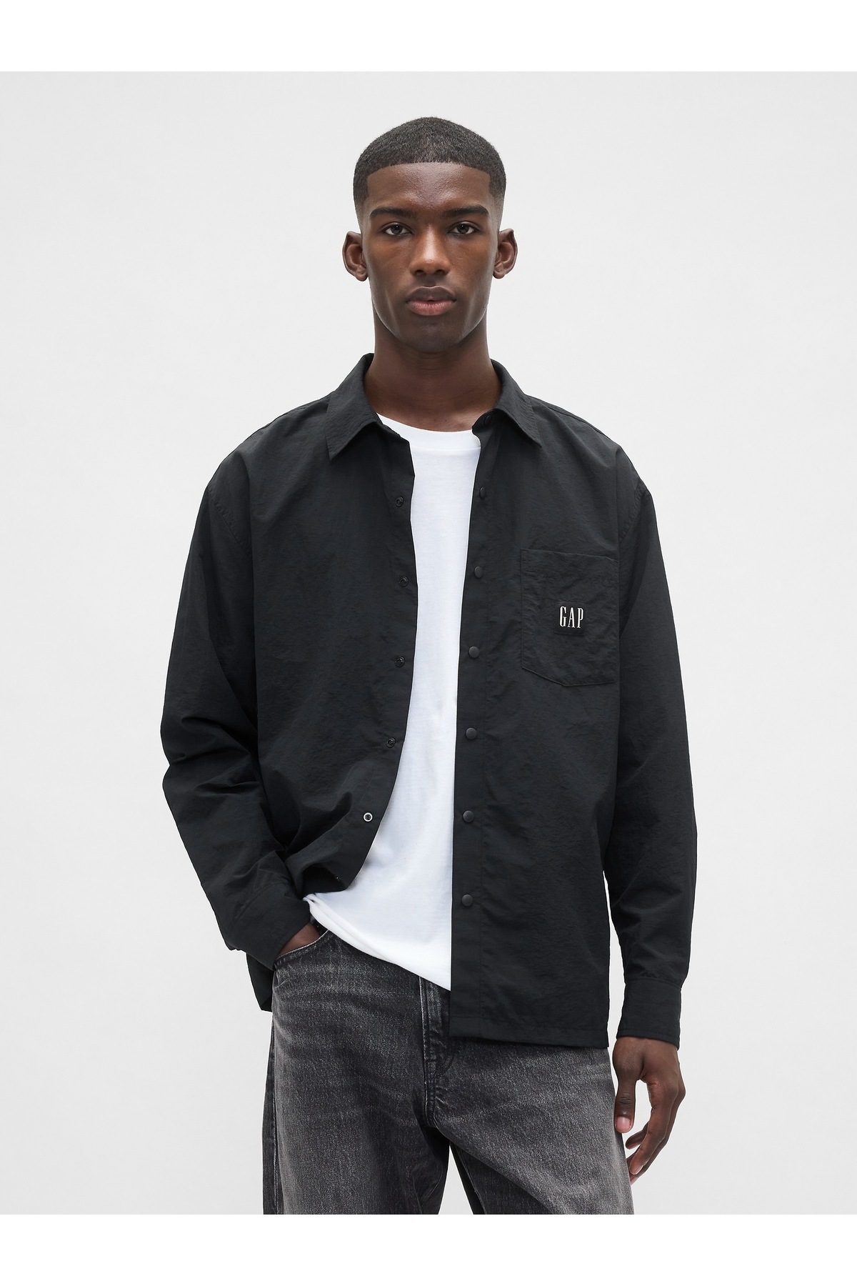Erkek Siyah 100% Geri Dönüştürülmüş Oversized Gömlek