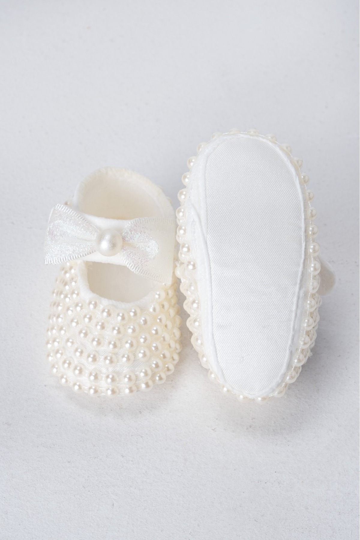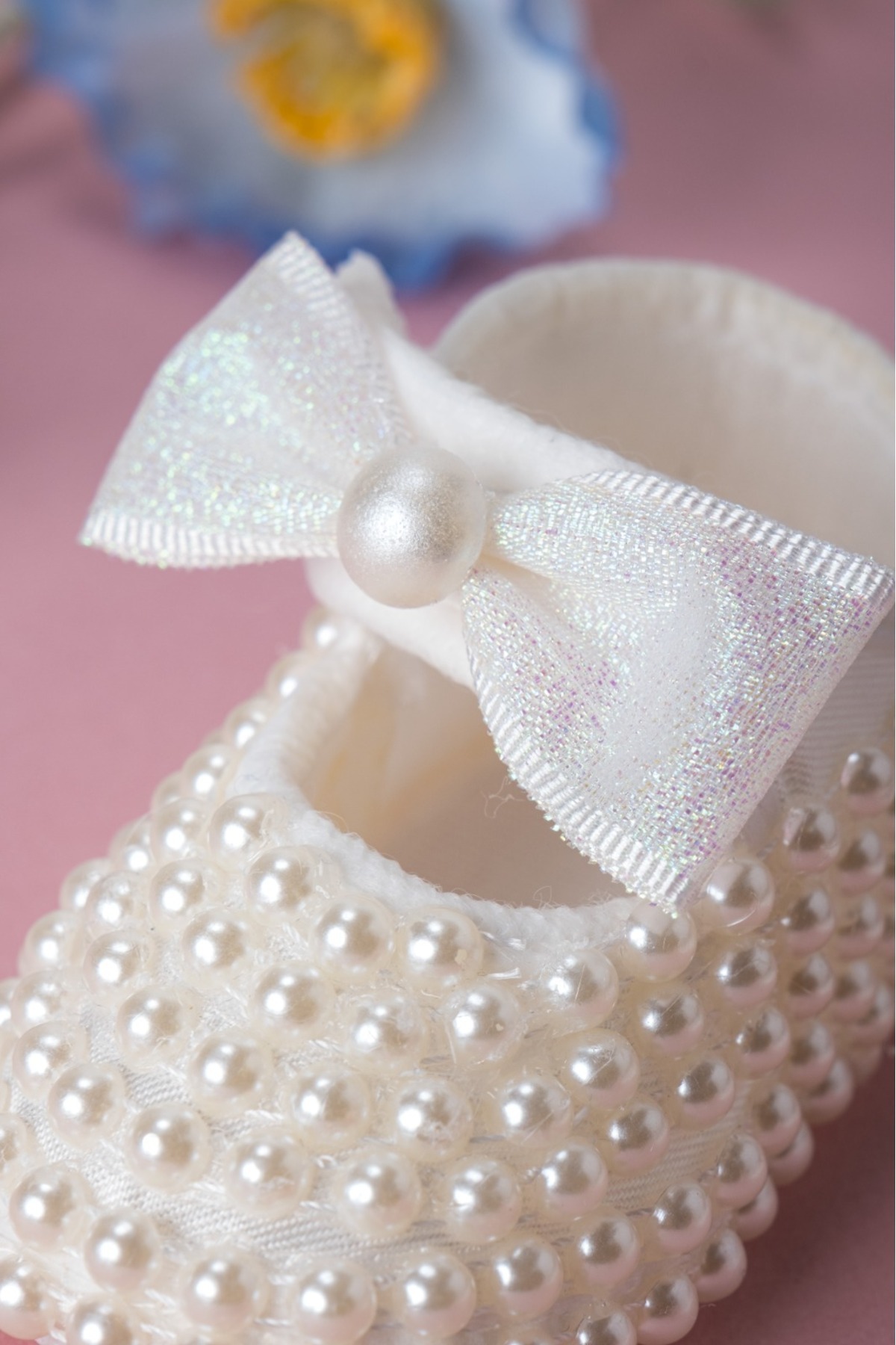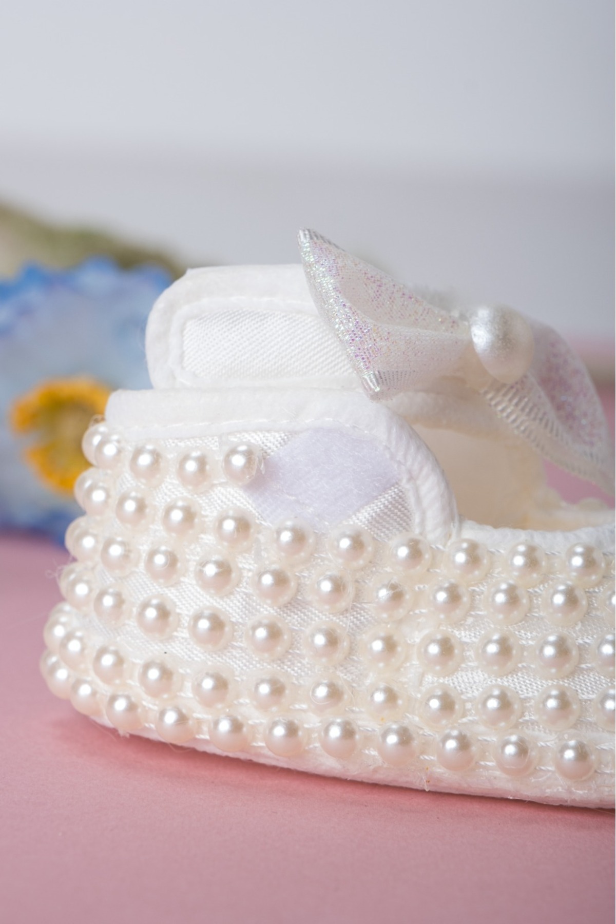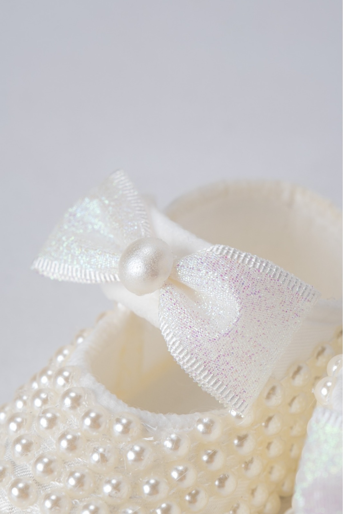 - Kız bebeklerinize özel, fiyonk detaylı parlak incili ayakkabı ve saç bandı seti ile şıklığı bir arada sunun.