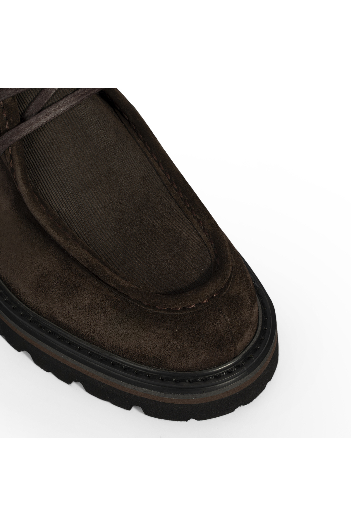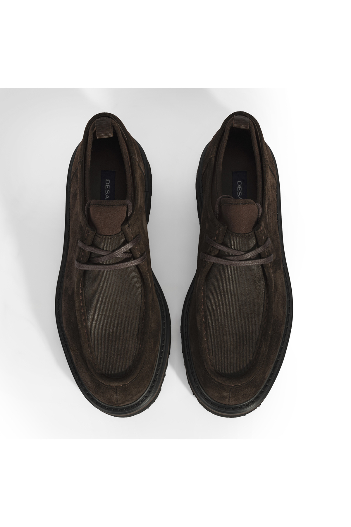 %100 süet baskı detaylı deri, %100 deri astar ve mostralı, ağız kısmında scuba detaylı, bağcıklı, EVA tabanlı erkek ayakkabı.