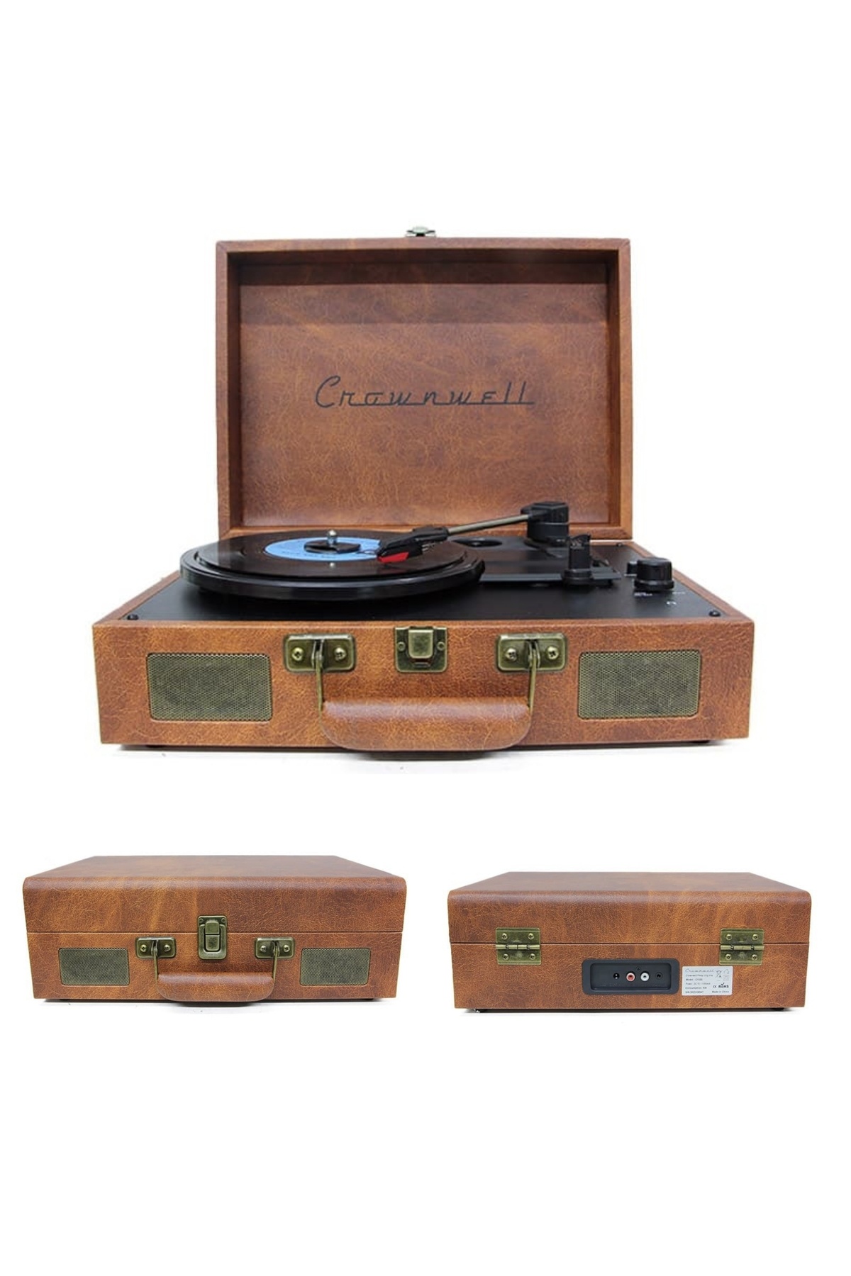 Ahşap Nostaljik Pikap Bluetooth & Hoparlörlü Gramofon 33/45/78 Devir Taş ve Plastik Plak Müzik Çalar