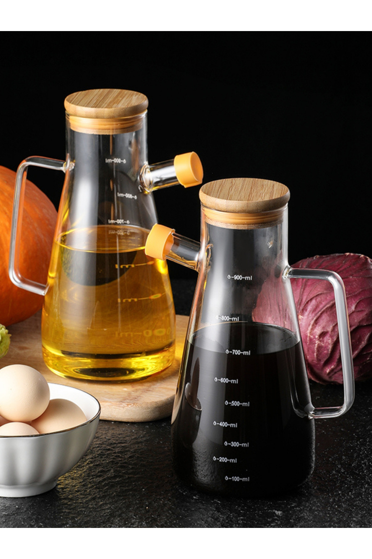 Bambu Kapaklı Vakumlu Borosilikat 3'lü Set Cam Yağdanlık Yağlık Sirkelik Bambu Altlık