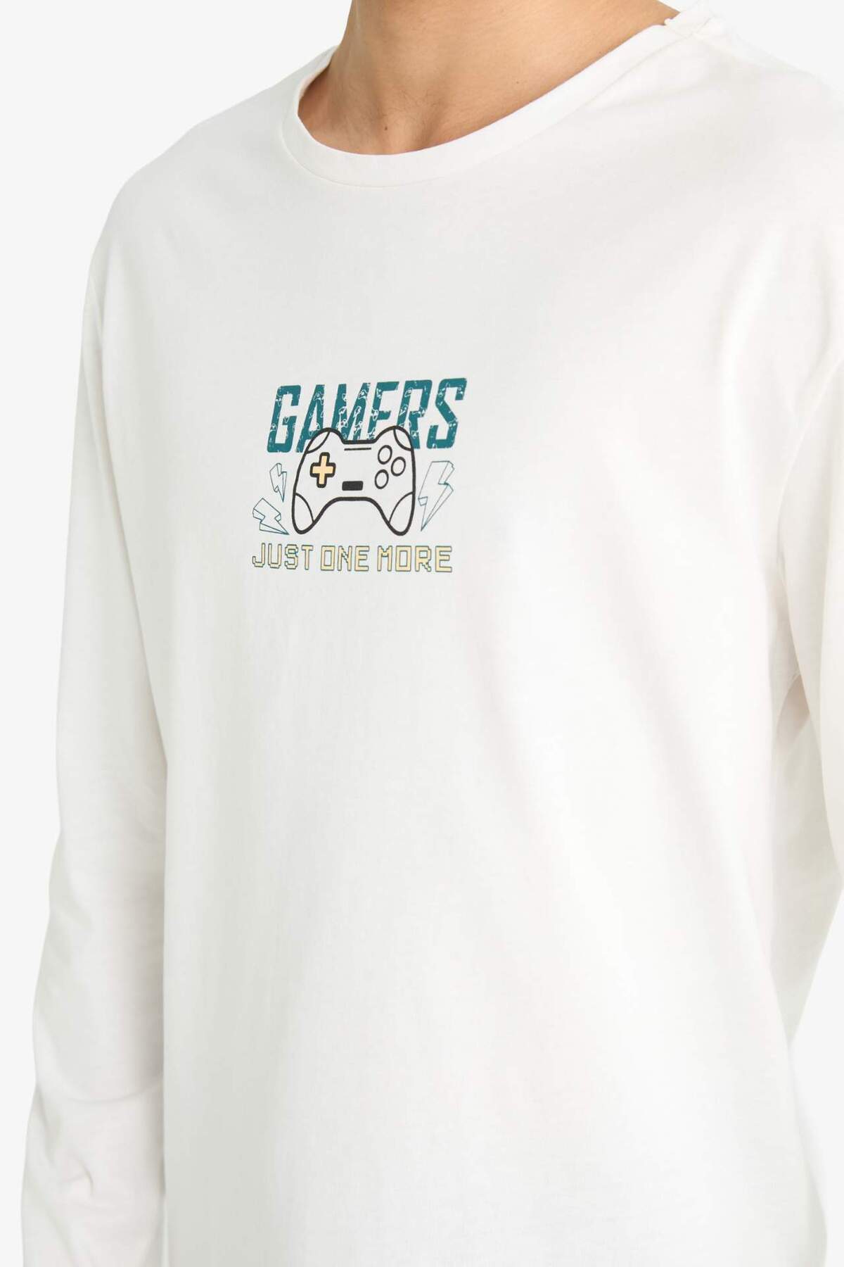 Baskılı uzun kollu üst ve desenli uzun altıyla şık ve sevimli bir uyku deneyimi sunar.