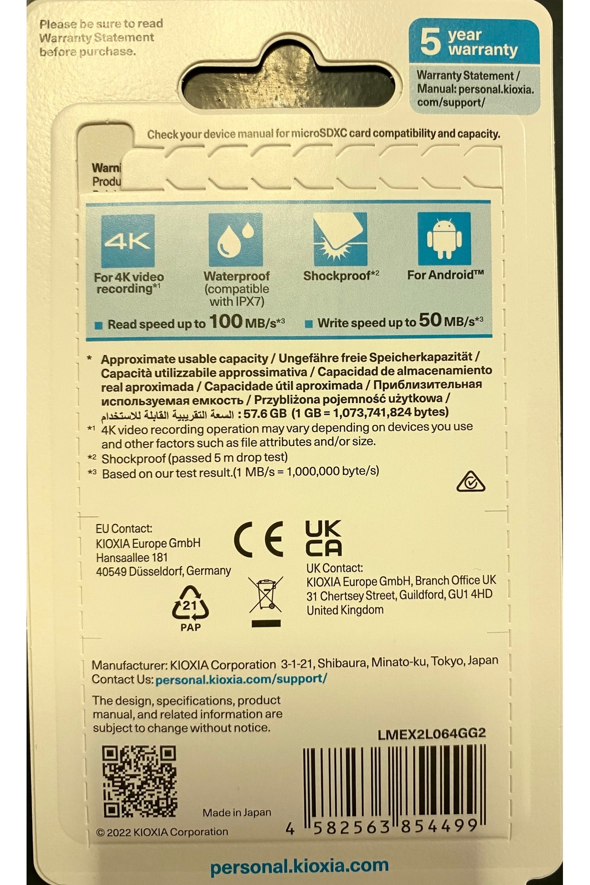 Exceria G2 64 GB MicroSDXC Hafıza Kartı - UHS-I V30 U3 A1 SD Adaptör, 4k Video Çekim