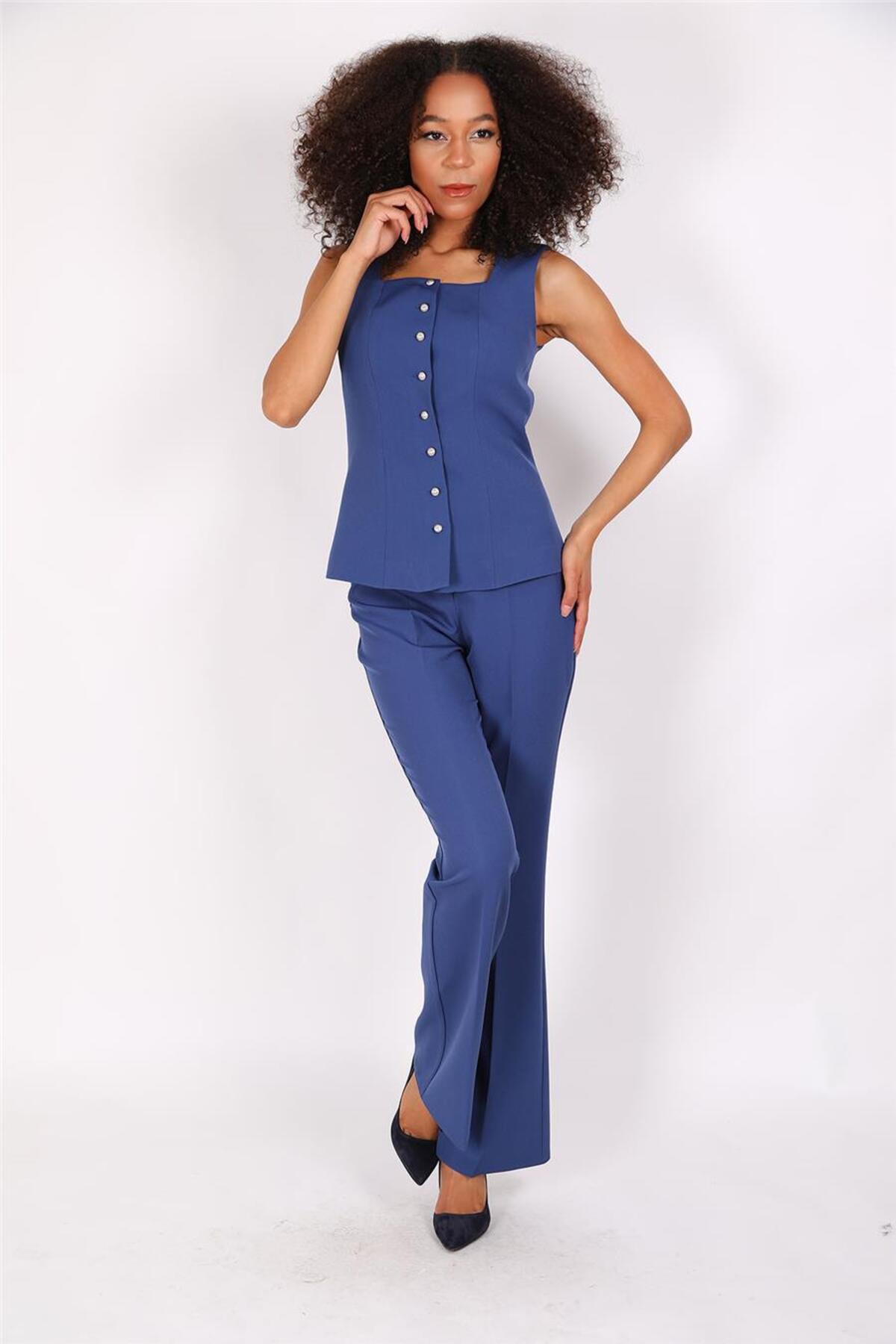 ÜRÜN TANIMI : KARE YAKA,KUPLU,ASTARLI,YELEK,YANDAN FERMUARLI,İSPANYOL PAÇA, PANTOLON TAKIM ÜRÜN ÖLÇÜLERİ YELEK : TAM BOY:58 CM ÜRÜN ÖLÇÜLERİ PANTOLON : TAM BOY:109 CM PAÇA GENİŞLİĞİ:28,5 CM DİR.