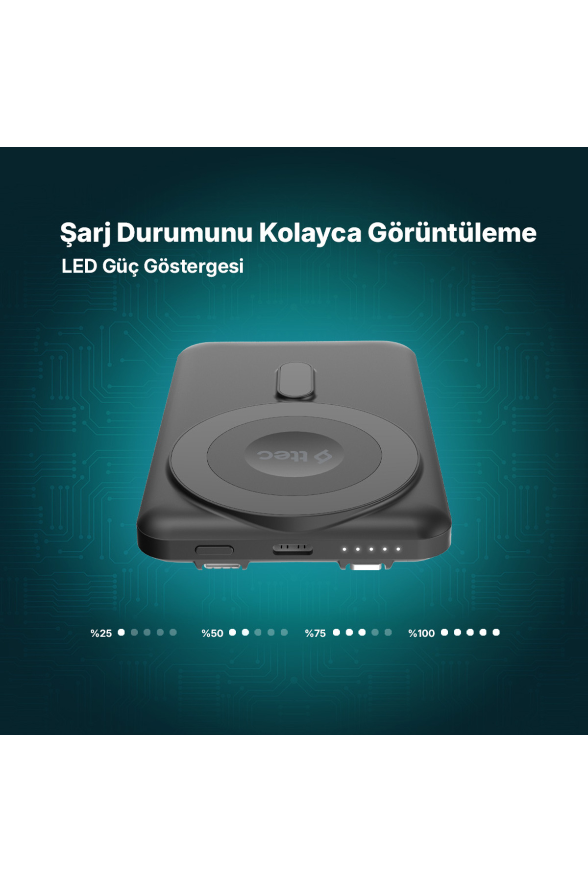 ReCharger M 5.000mAh MagSafe Uyumlu PD 20W Lightning ve USB-C Dahili Kablolu Stantlı 2BB236S