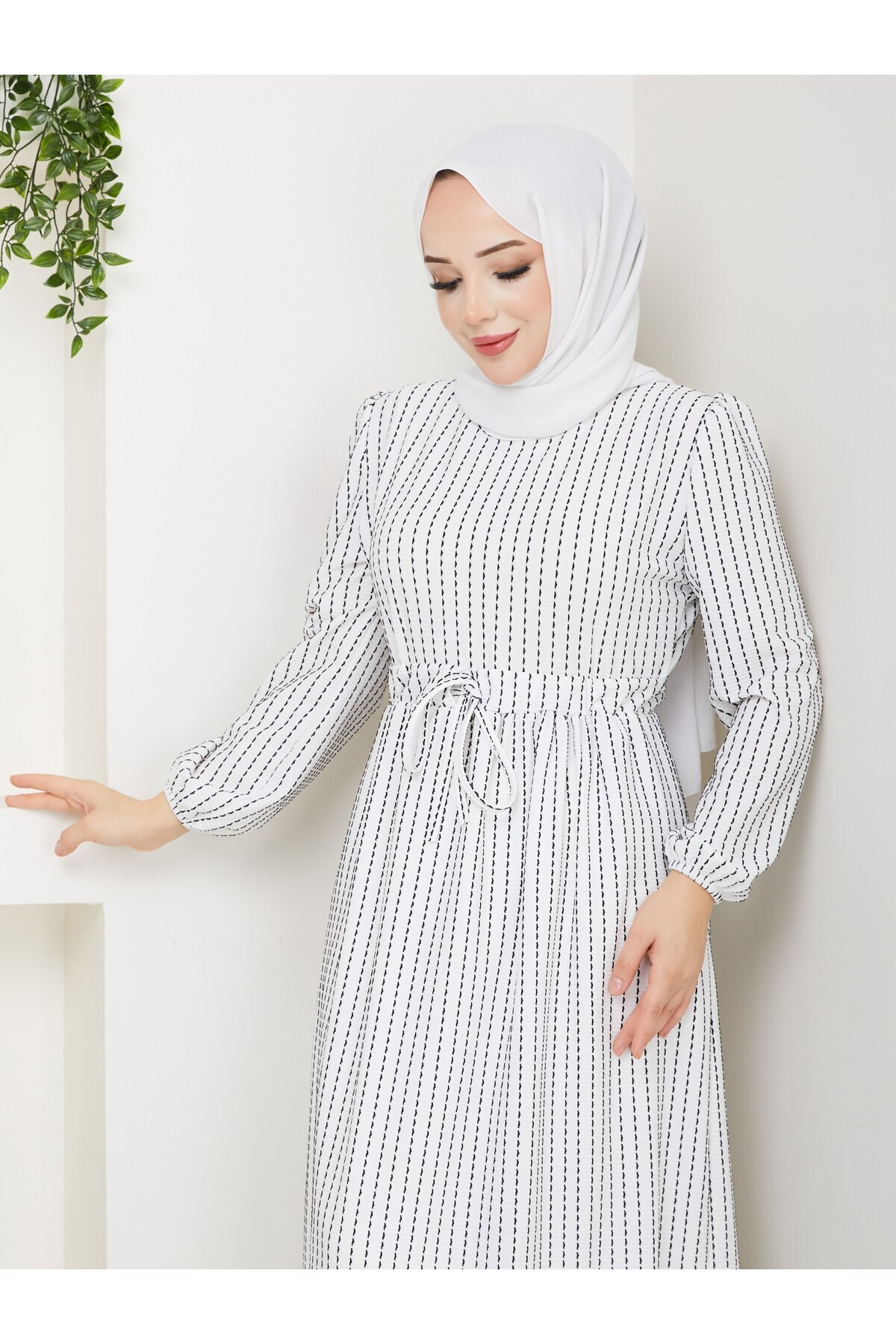• Merziye kolu lastikli beli tüneli bürümcük elbise