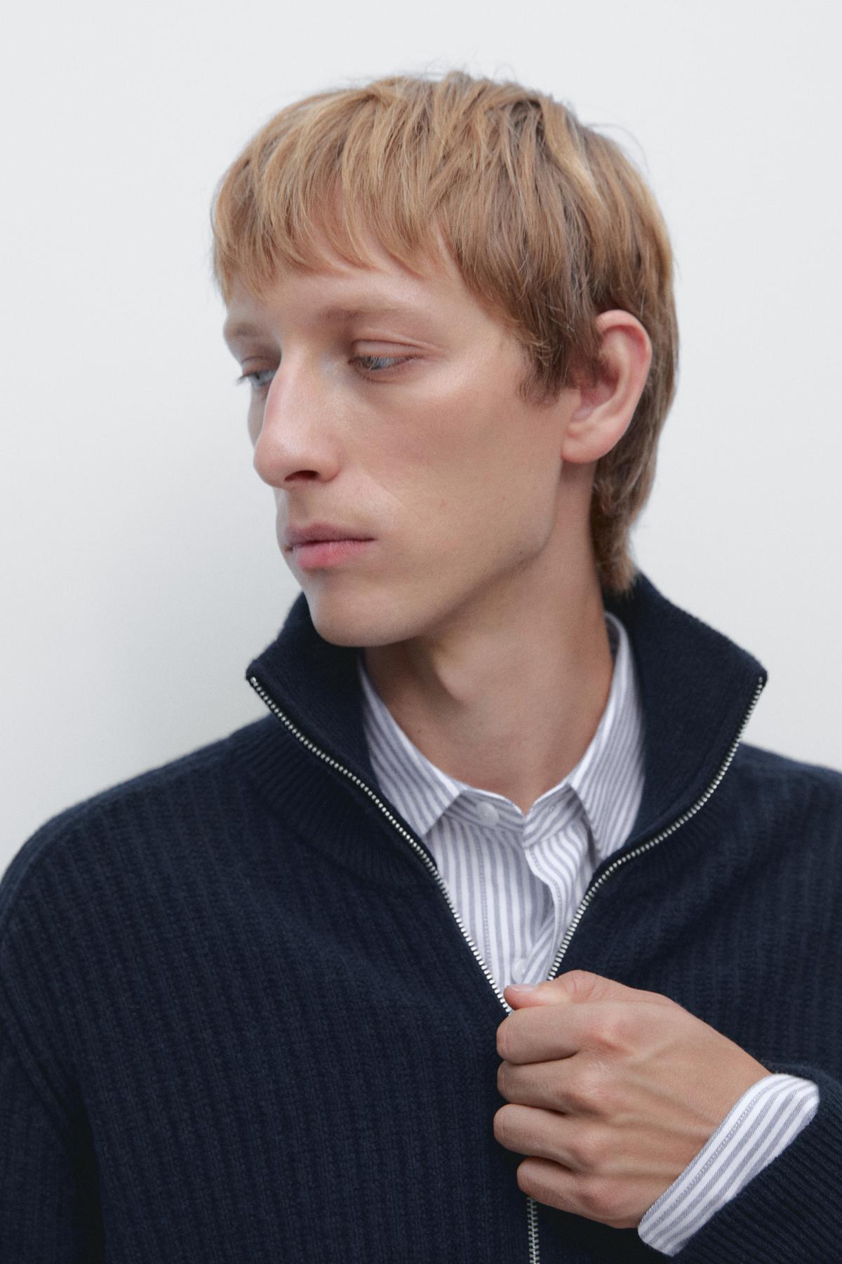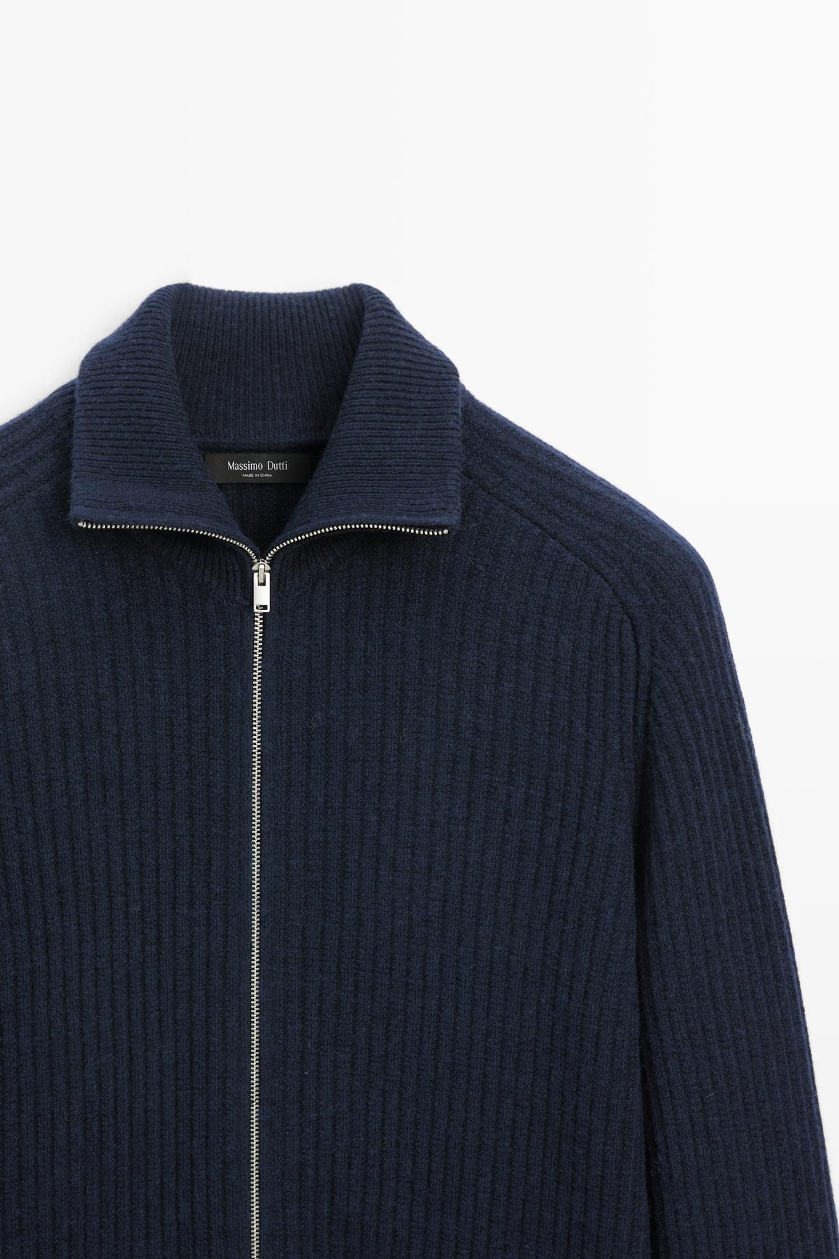 Fermuarlı yün karışımlı hırka
