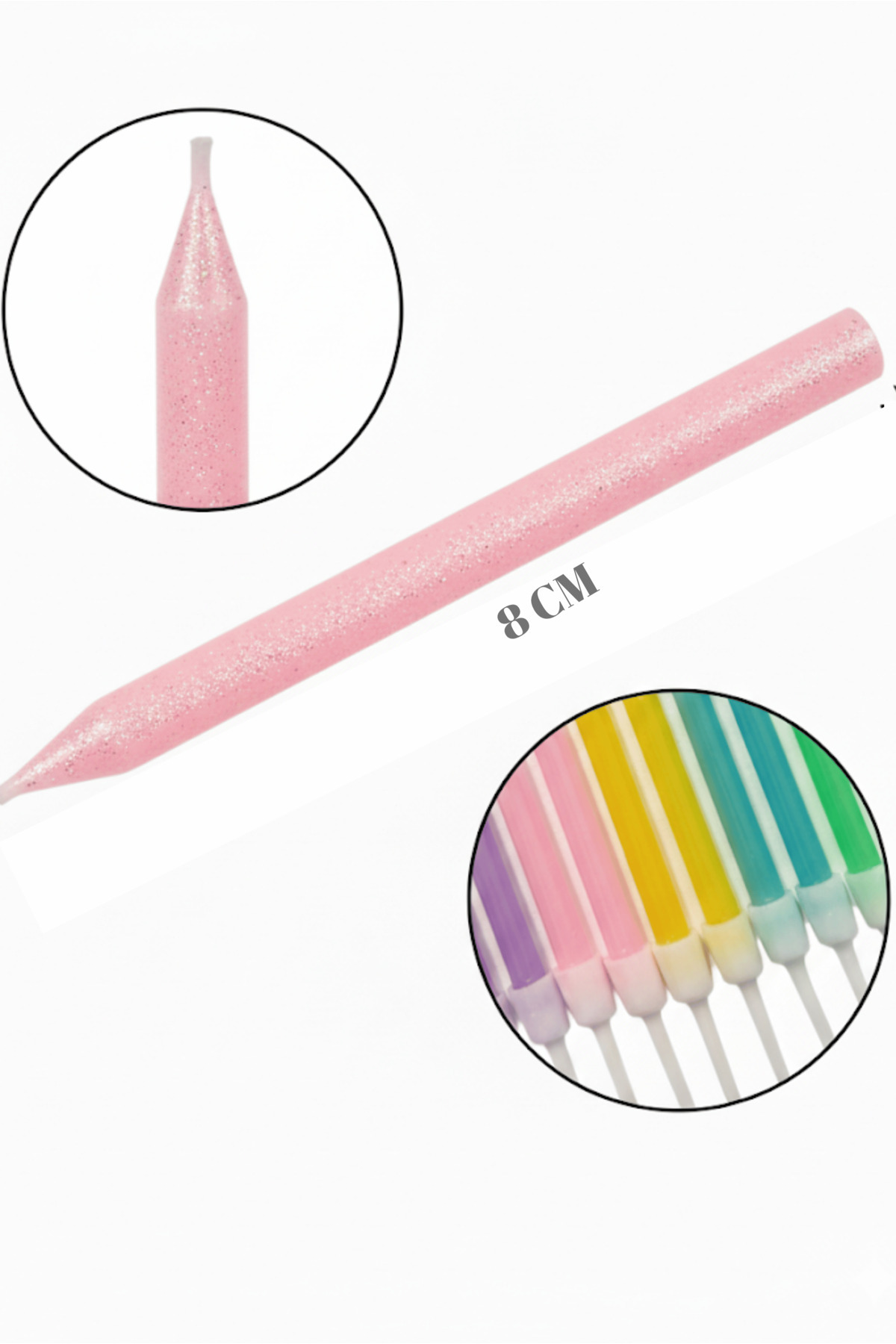 Simli Renkli Doğum Günü Mumları 12’li Set – Pasta Süs Mum