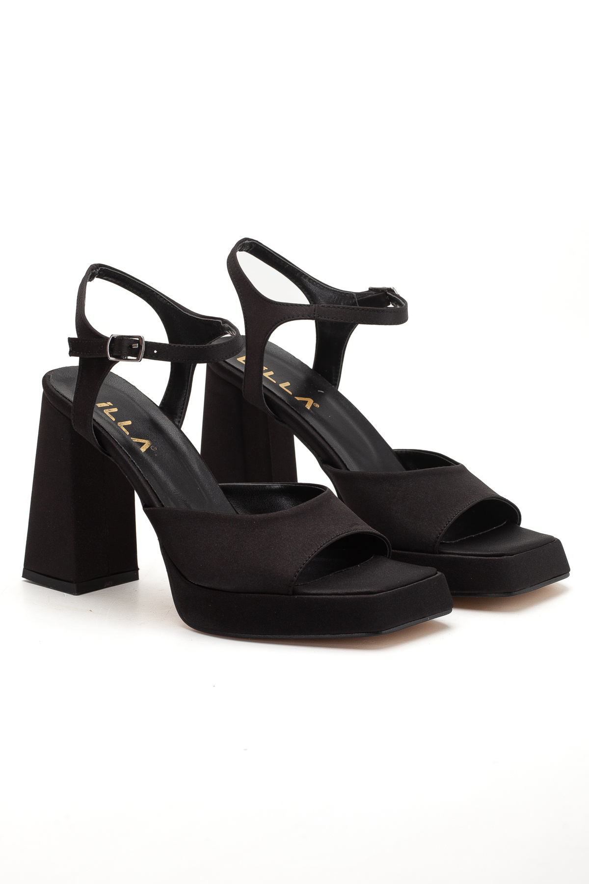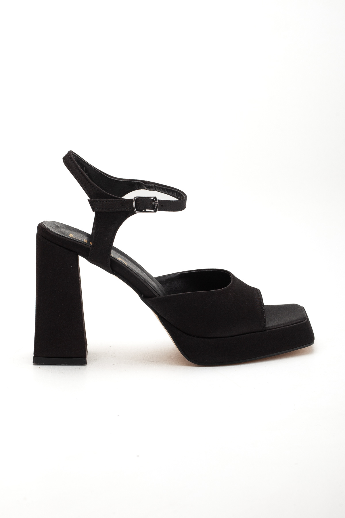 - Zarif ve şık tasarımıyla her özel günün vazgeçilmezi, siyah saten abiye ayakkabı.