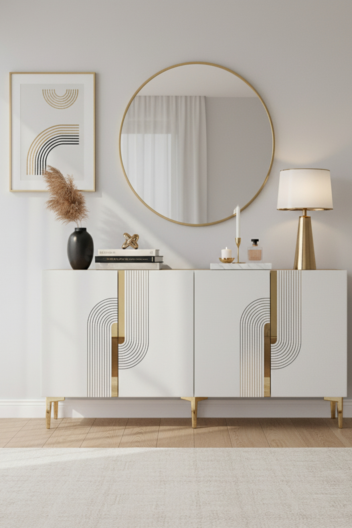 - beyaz renk detayları ile modern ve zarif bir görünüm sunarken, gold aksesuarlarıyla lüks bir hava katıyor.