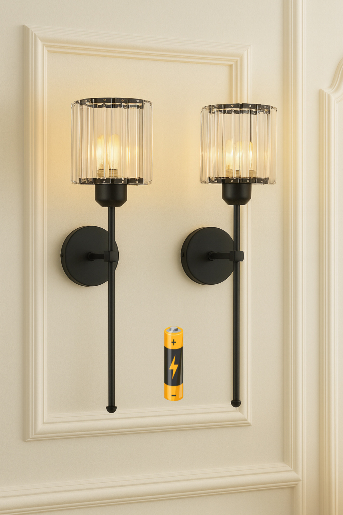 Modern Tasarım Kristal Taşlı Kablosuz Aç Kapa Butonlu Pilli Aplik Siyah Tak Çalıştır 1 ADET