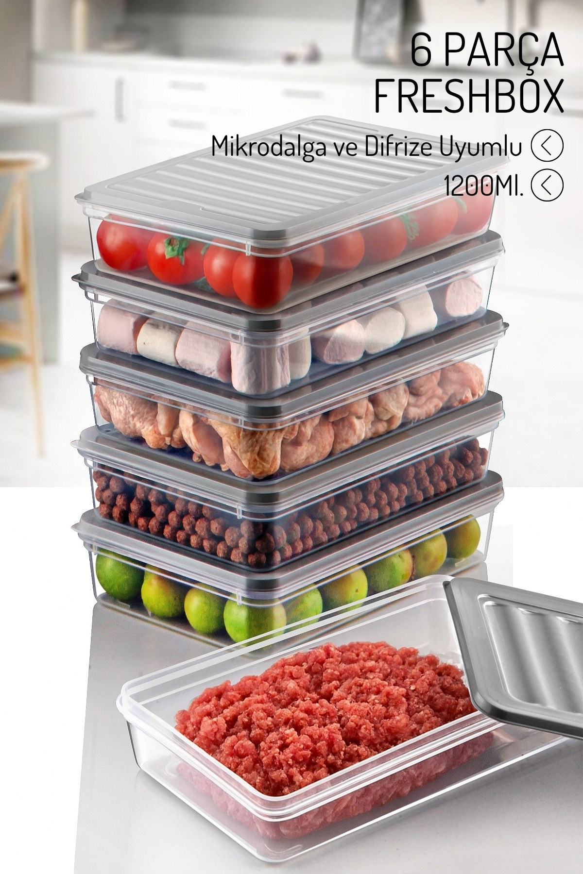 6 Adet 1200Ml. Freshbox Saklama Kabı Seti - Mikrodalga ve Difrize Uyumlu