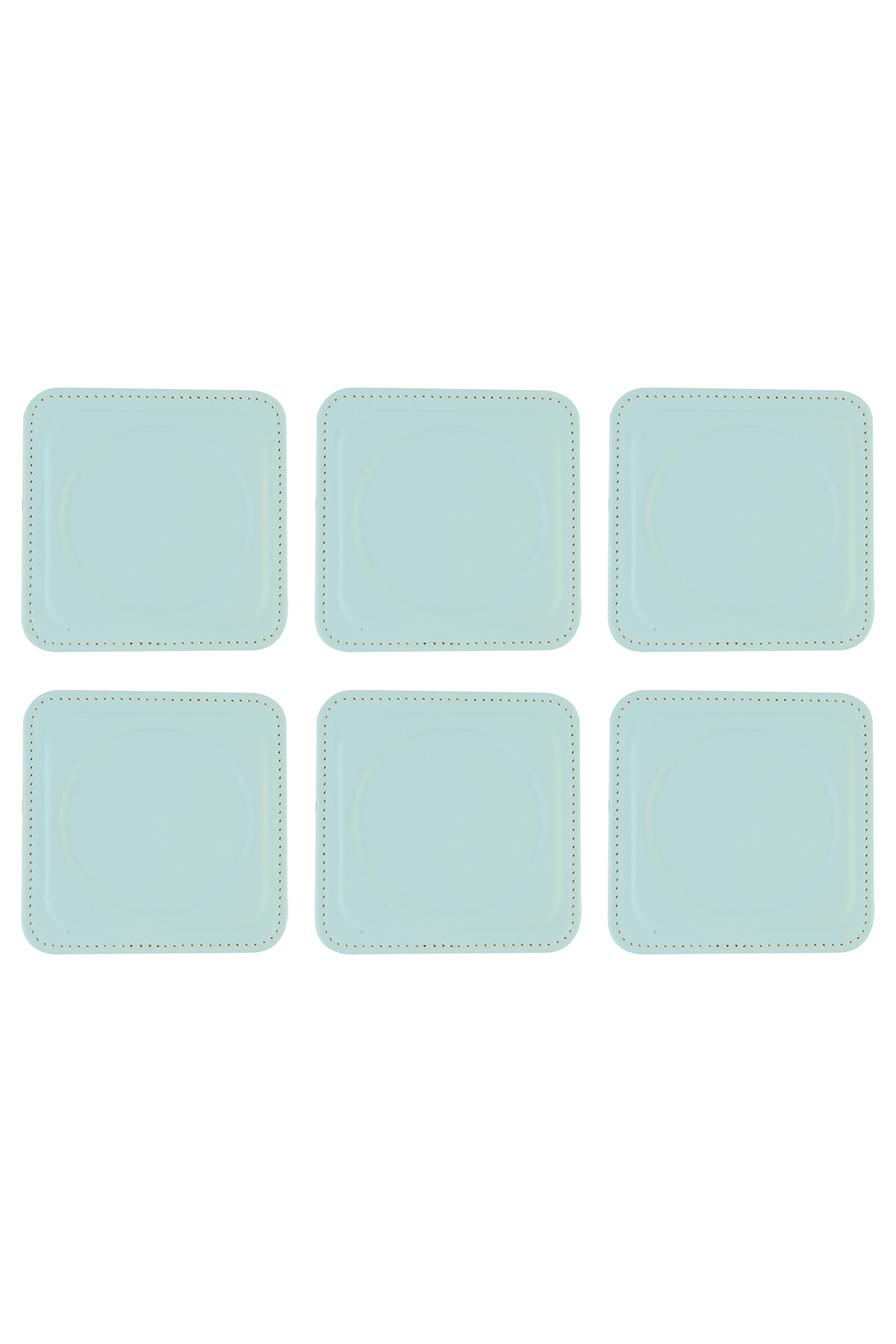 Bardak Altlığı,6’lı Set,Masaüstü Yuvarlak Cup Coaster,Vegan Suni Deri,11x11 cm.,Su Yeşili