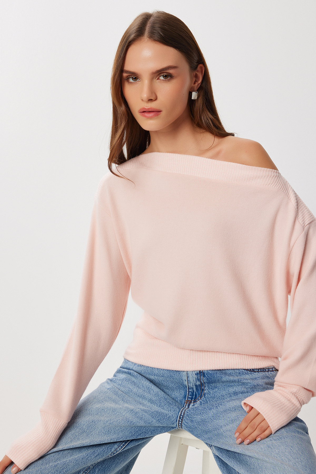 Açık Omuzlu Yumoş Kazak LUB0257 PEMBE