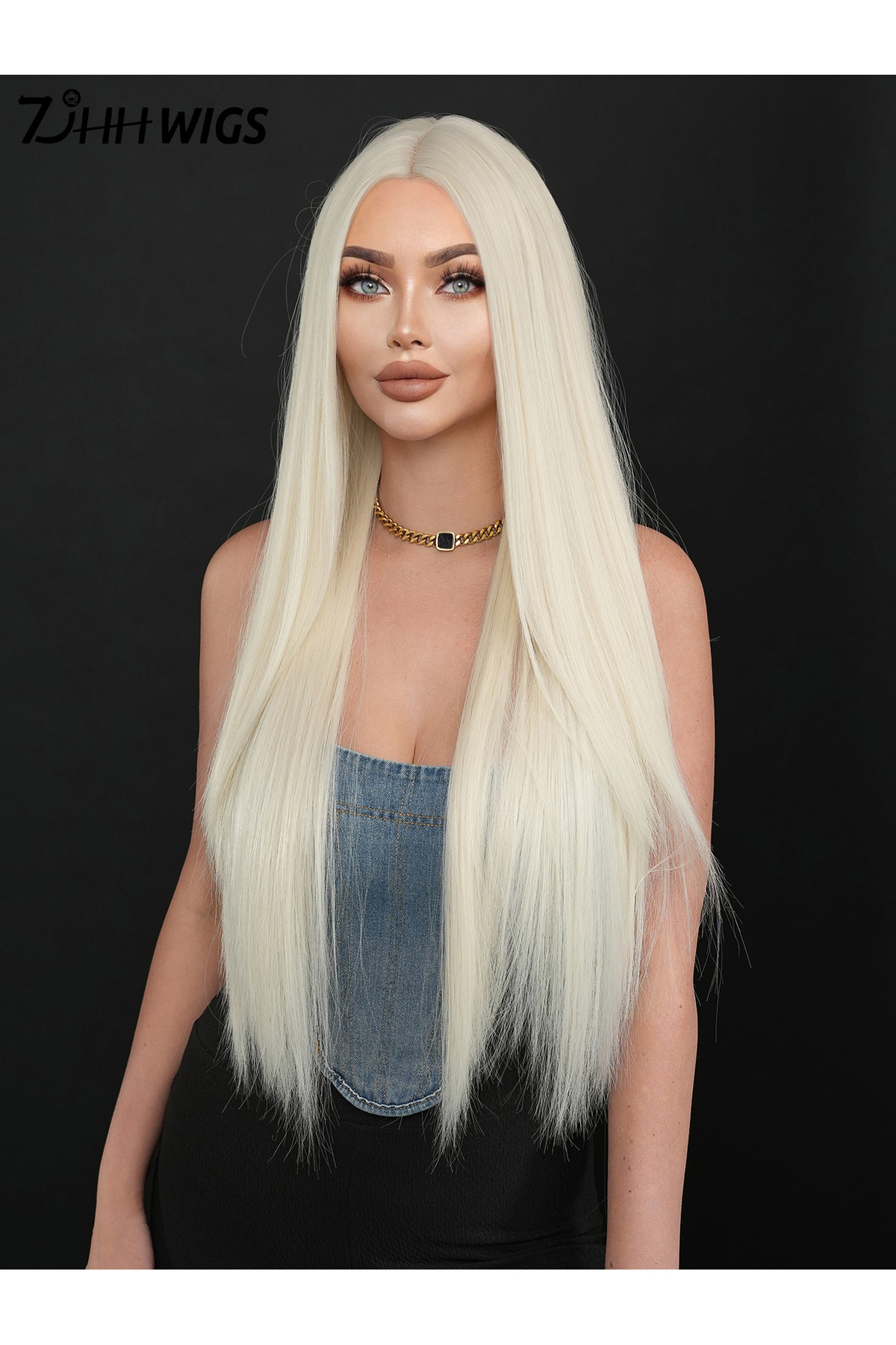 Soğuk Sarı Mat Düz Perçemsiz Vip Peruk
