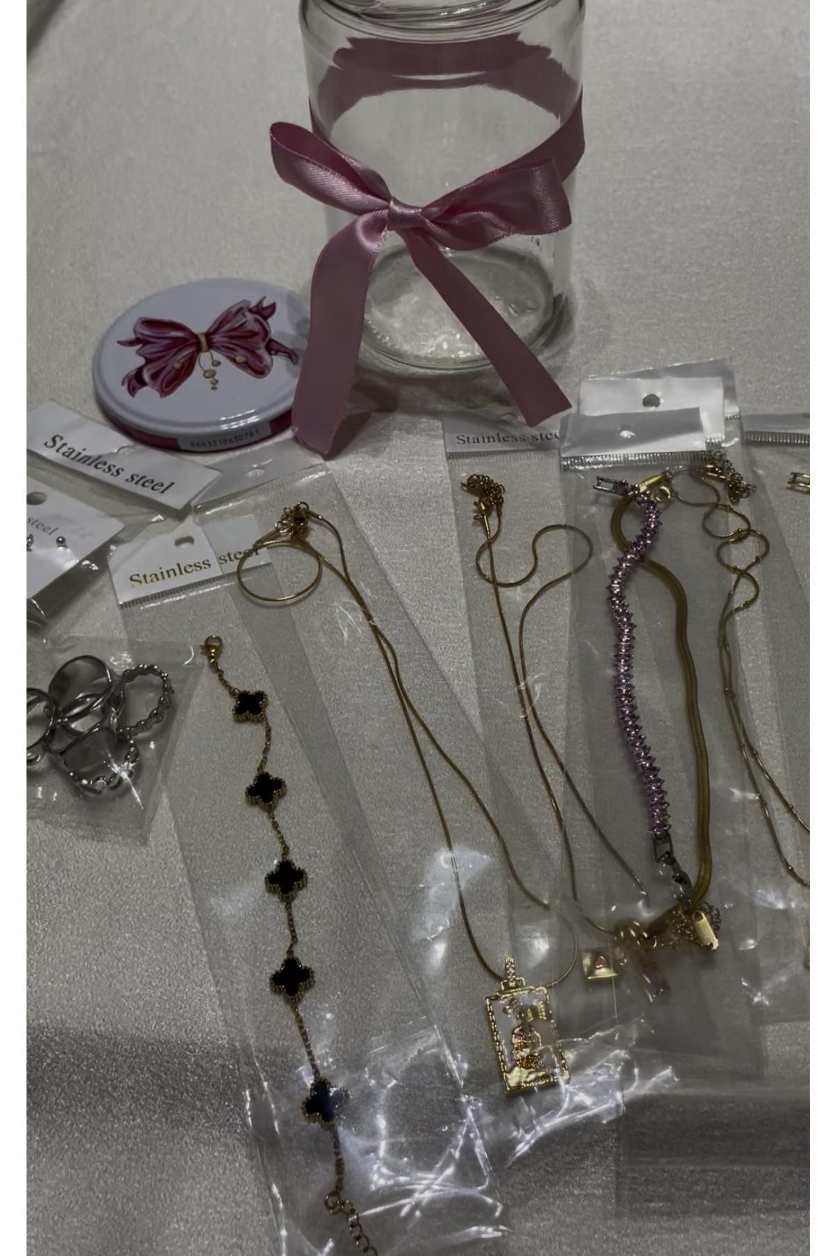 Sürpriz takı kavanozumuz full çelik ürünlerden oluşmaktadır