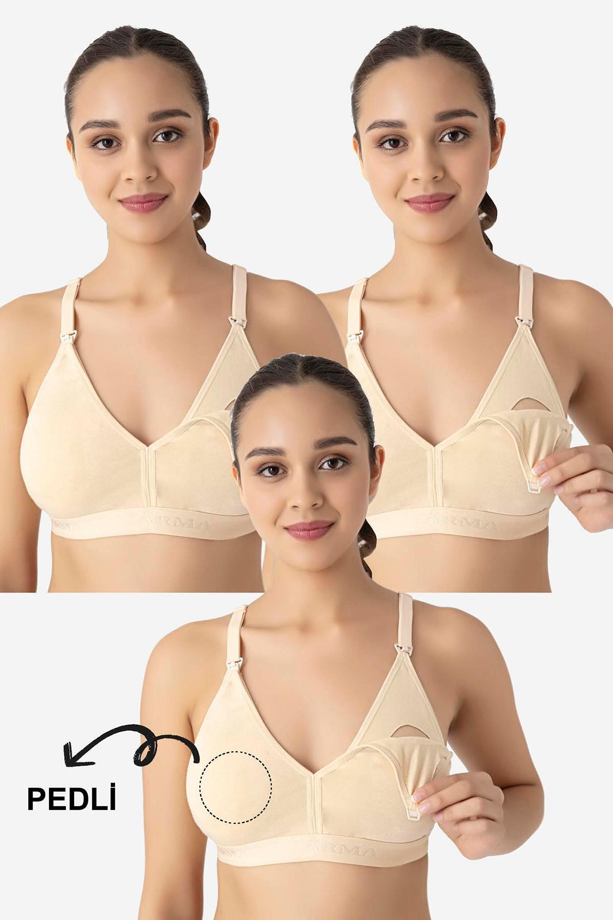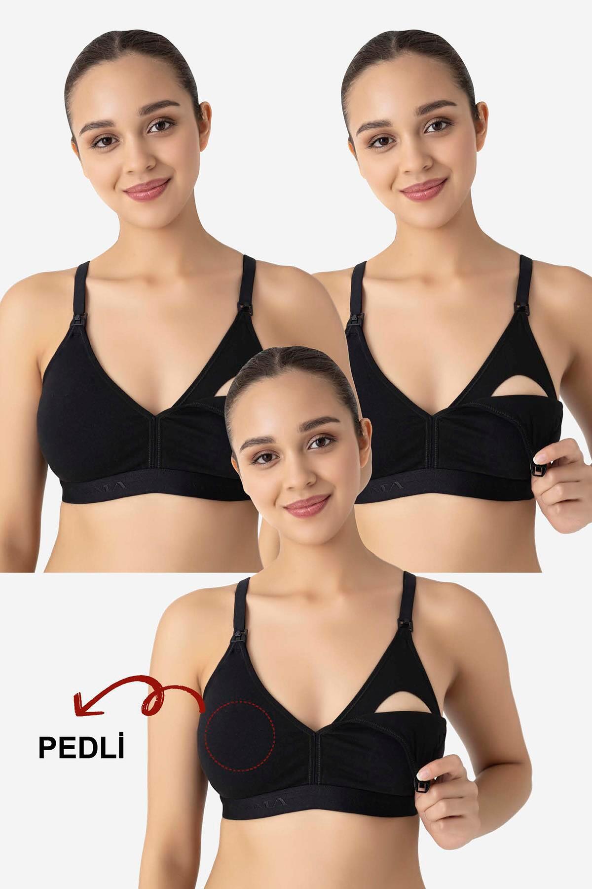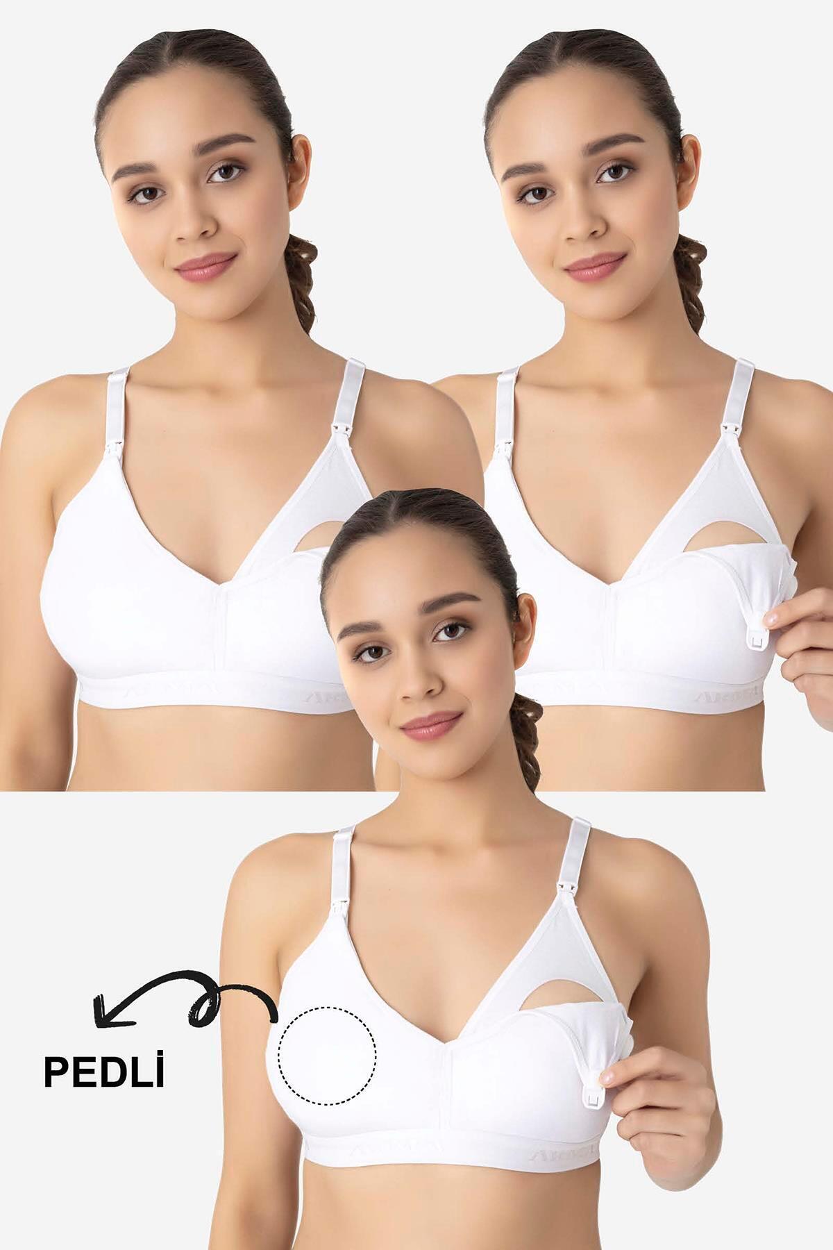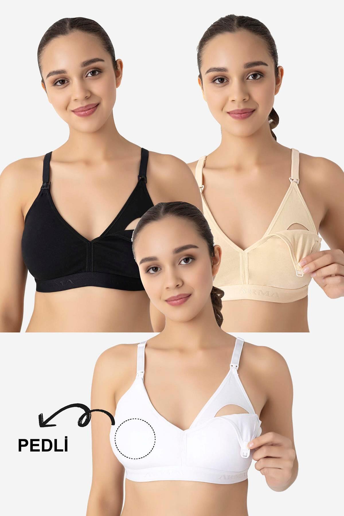 Çıkarılabilir Pedli Emzirme Sütyeni 3'lü Beyaz Siyah Ten Pamuklu Göğüs Ucu Belli Etmez