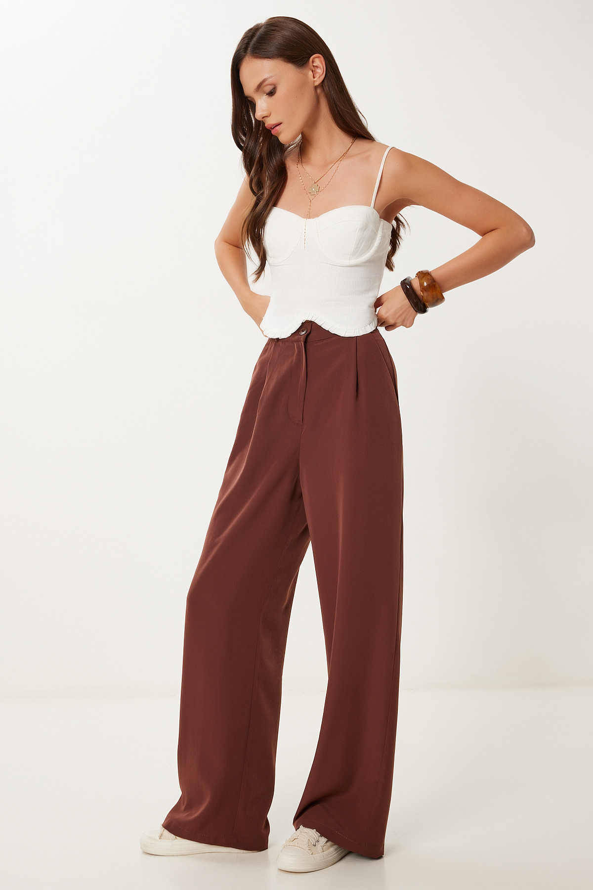 Dökümlü, rahat kalıp, ayrobin palazzo pantolon